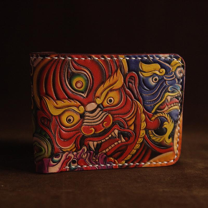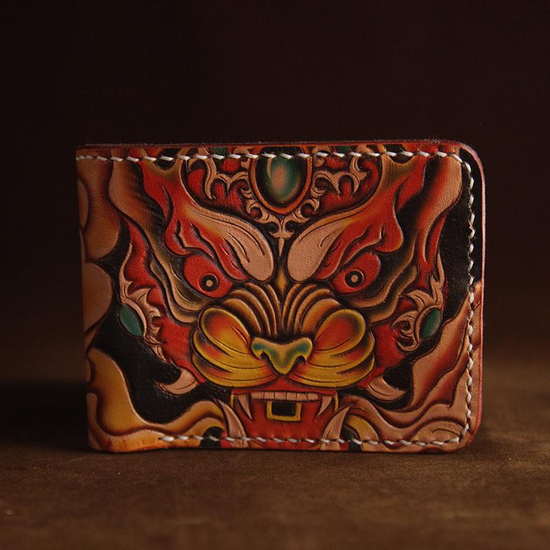 Style: Handmade Tooled Leather Mens Skull billfold Wallets Bifold Wallet Small Wallet For Men