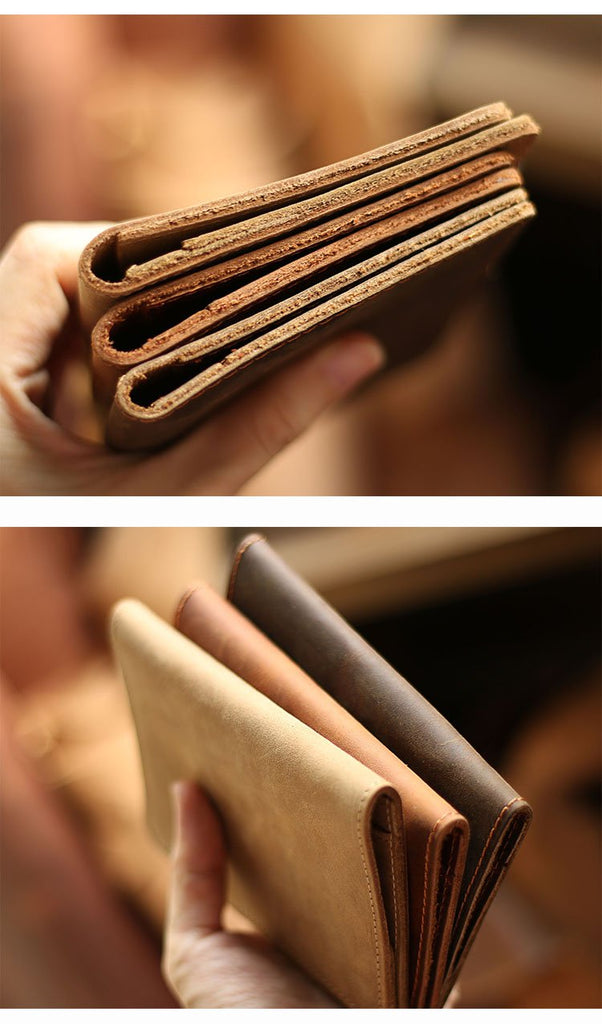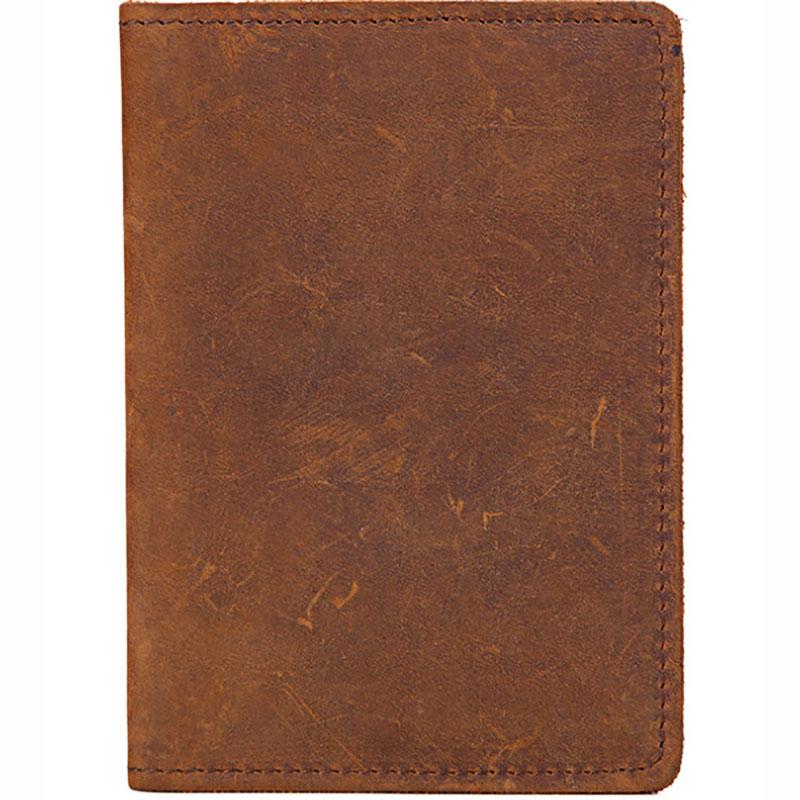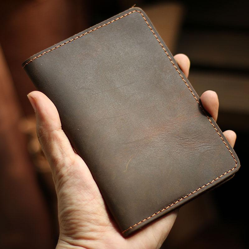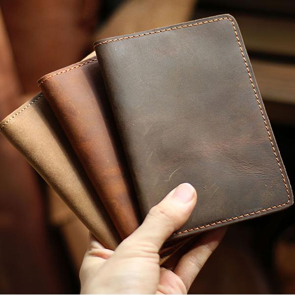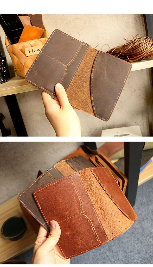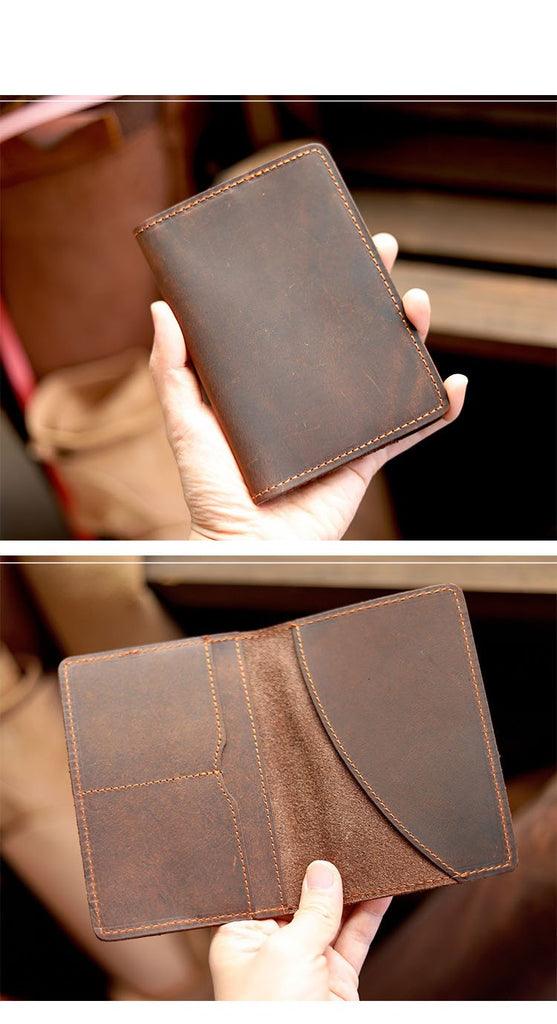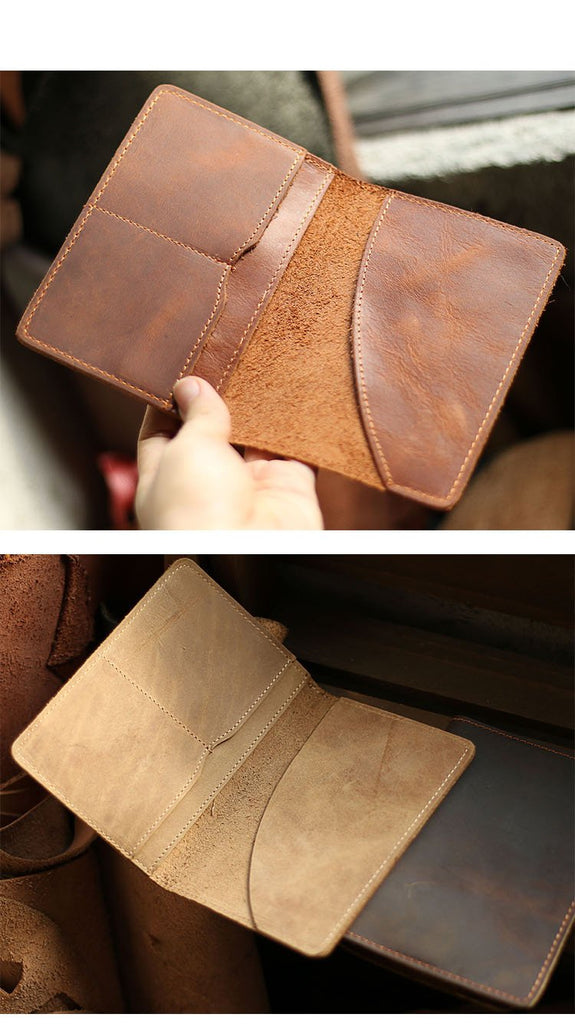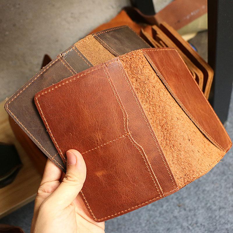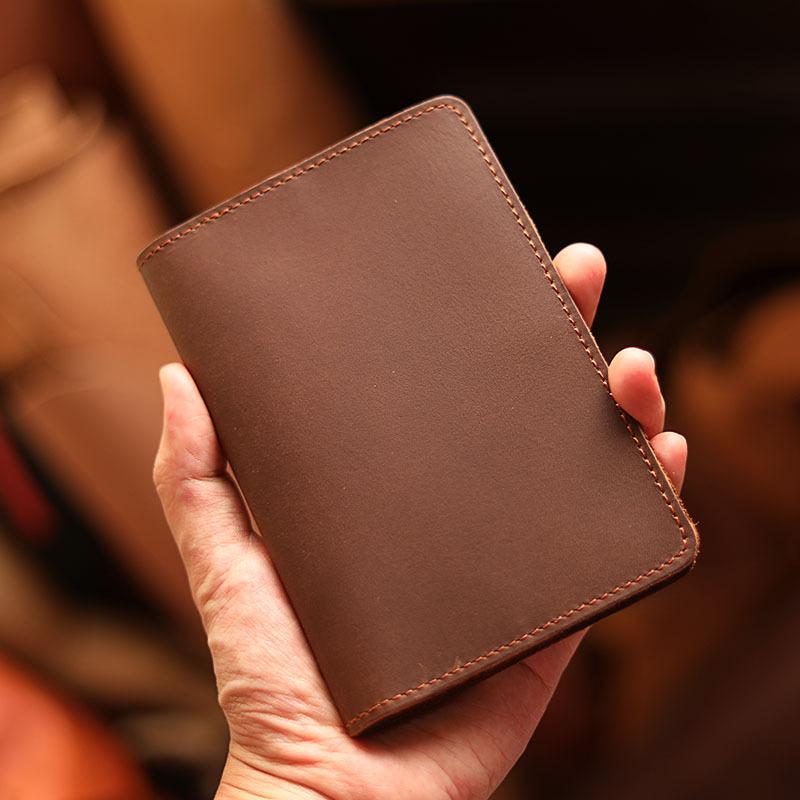 Style: Casual Brown Handmade Leather Mens Bifold Passport Holder Card Holder For Men