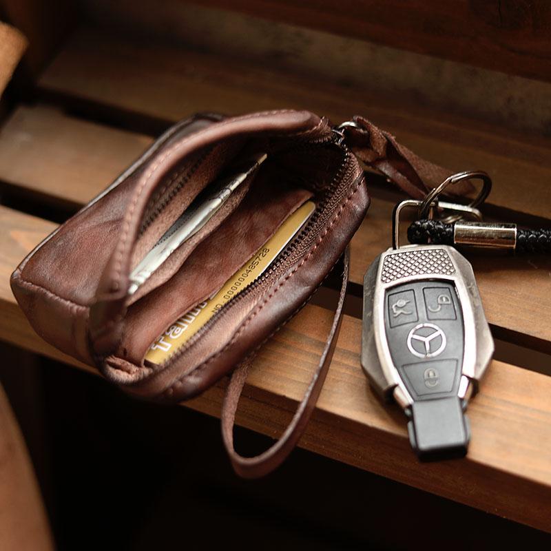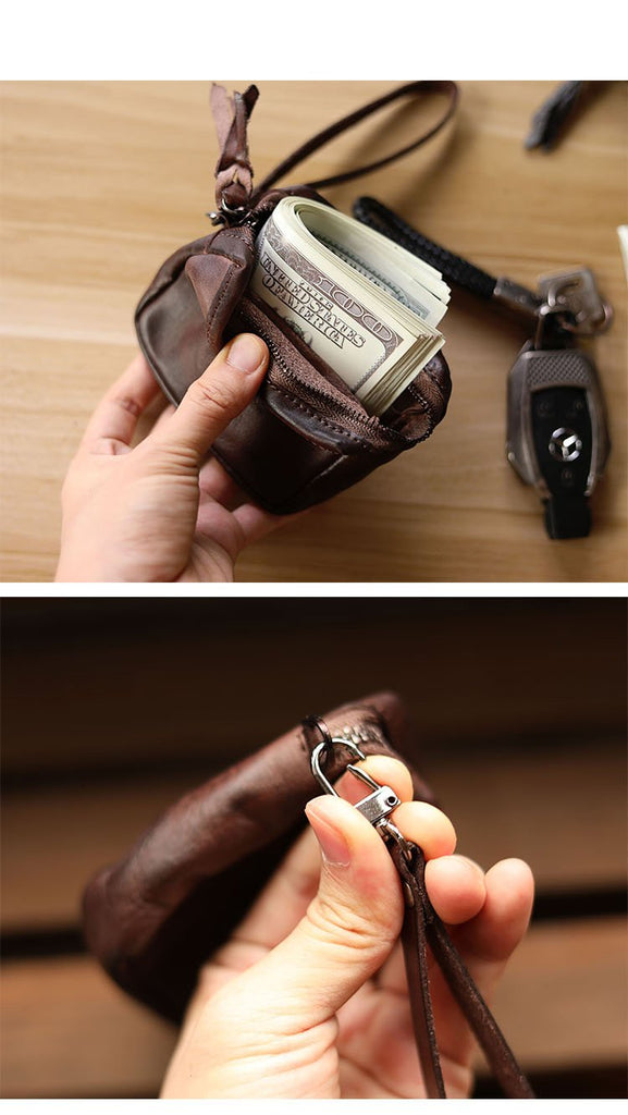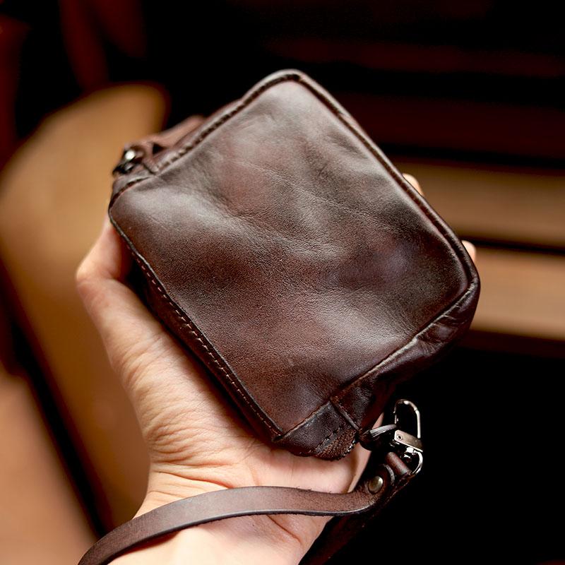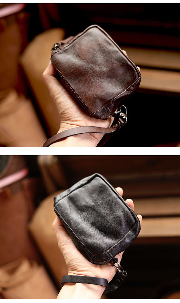 Style: Cool Black Leather Mens Card billfold Wallet Coin Purse Wirstlet Zipper Small Wallet For Men