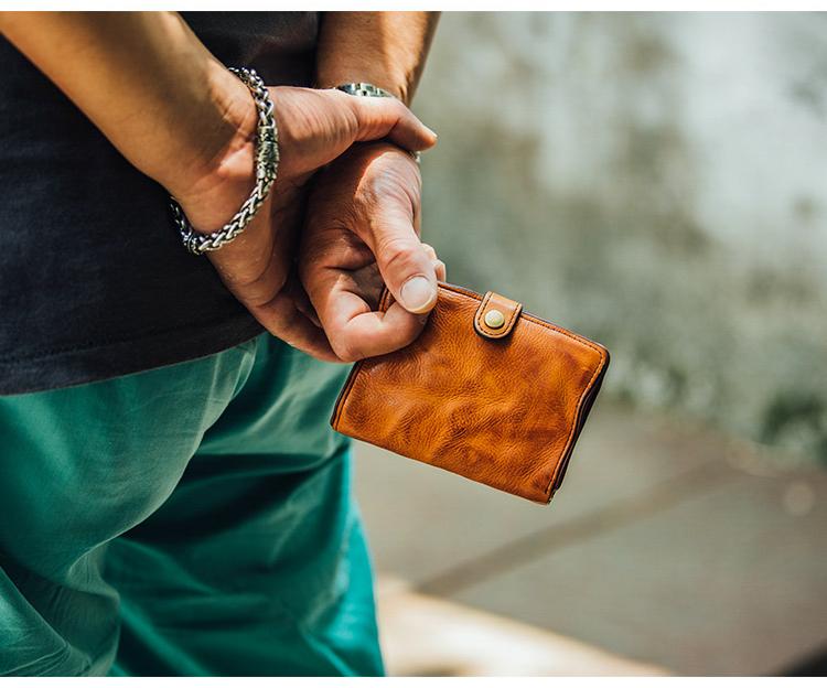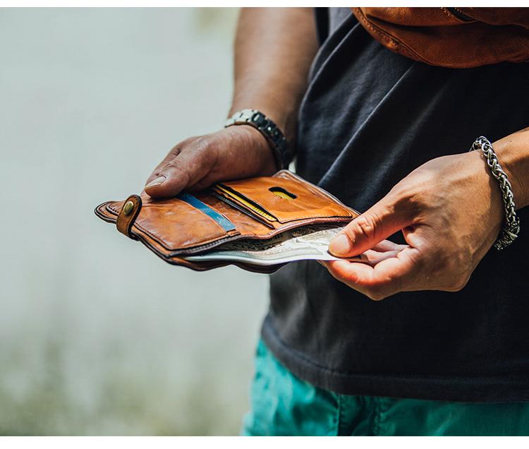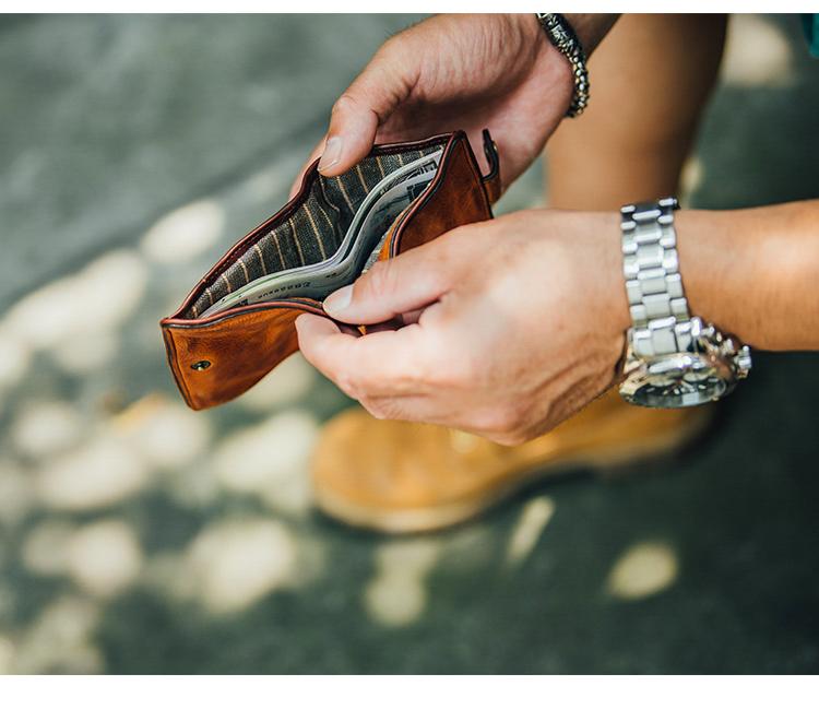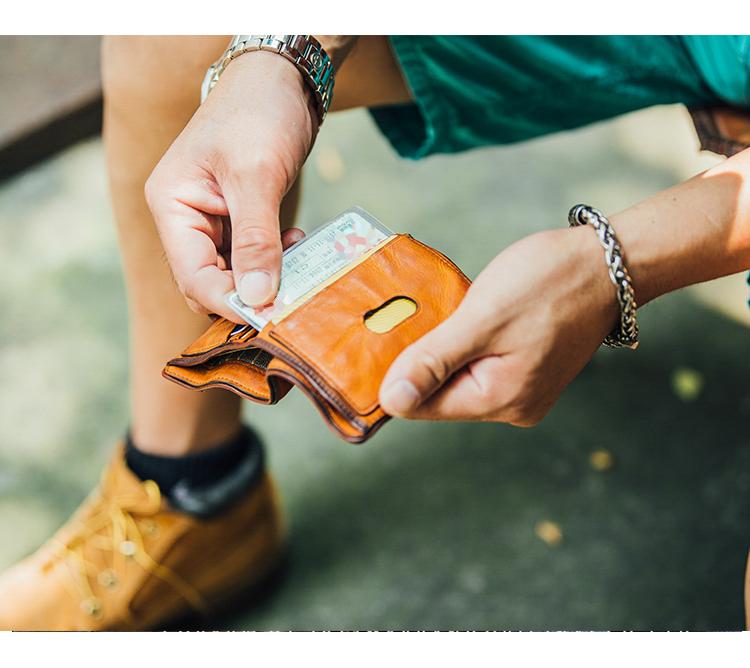 Design: Cool Black Leather Mens Small Card Wallet Change Wallet Light Brown billfold Wallet For MenMen