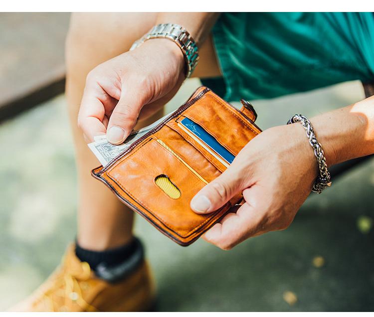 Style: Cool Black Leather Mens Small Card Wallet Change Wallet Light Brown billfold Wallet For Men