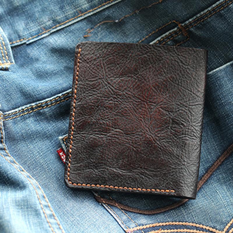 Design: Cool Chocolate Leather Mens Vertical Small Wallet billfold Wallet Bifold Slim Wallet For Men