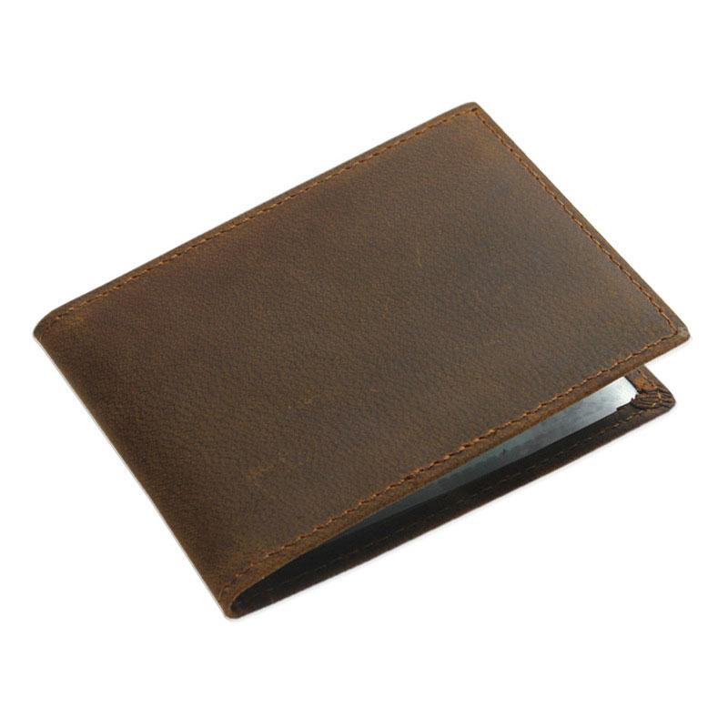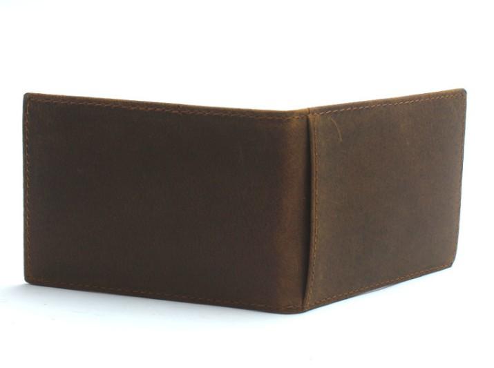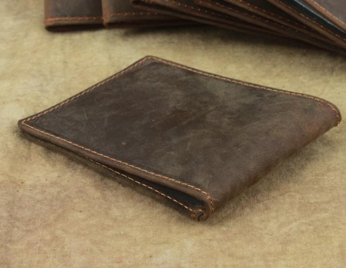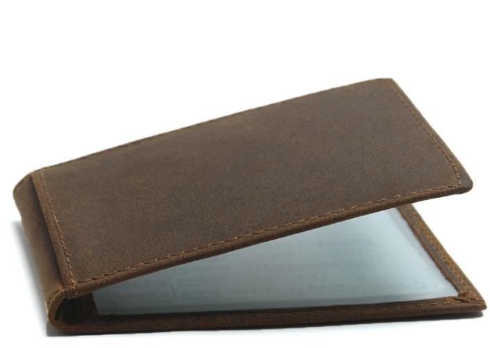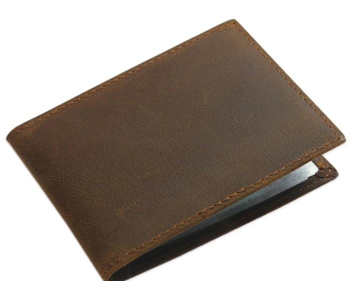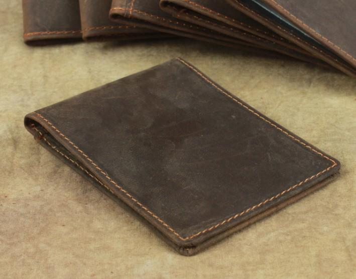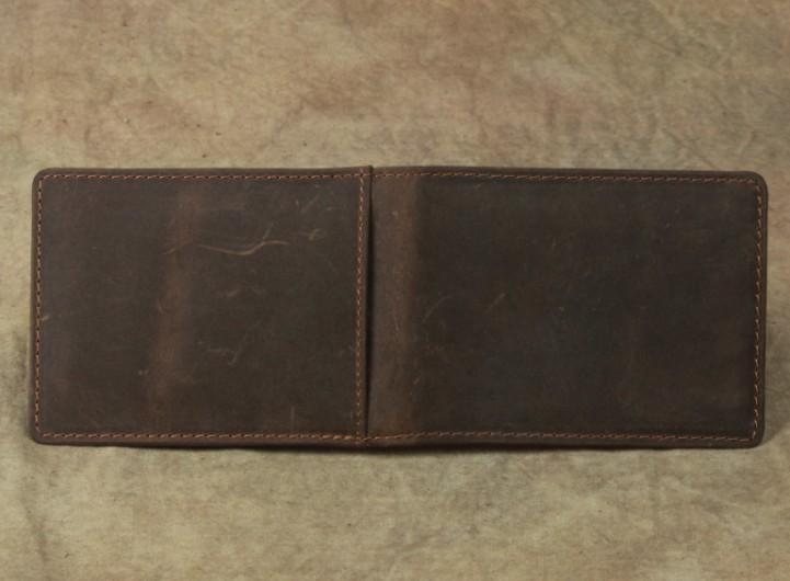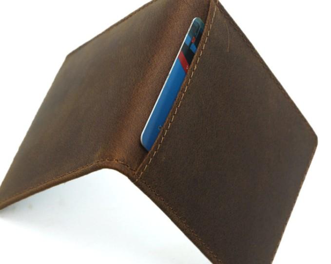 Cool Dark Brown Leather Mens Small Bifold Wallet billfold Wallet License Wallet for Men