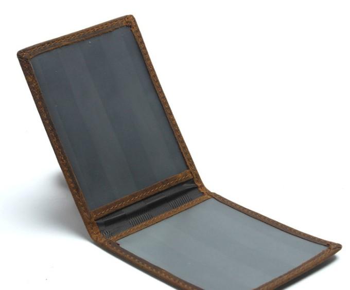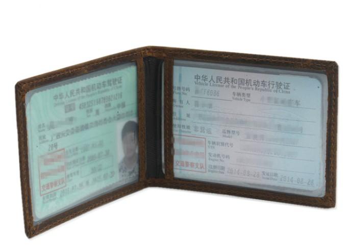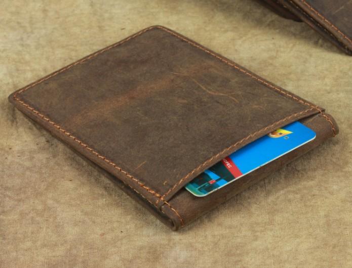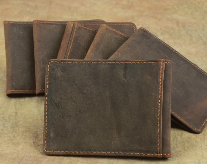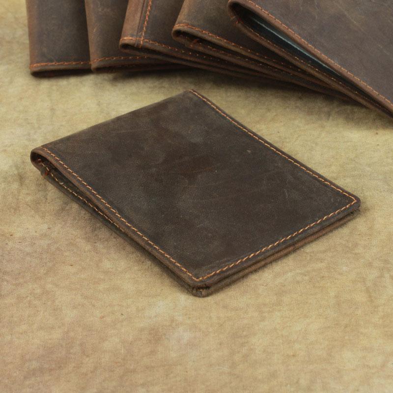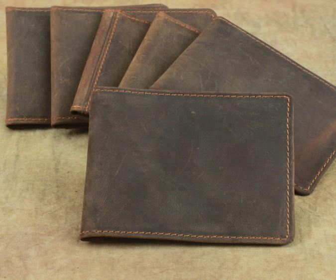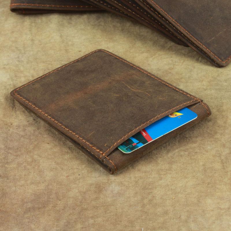Cool Dark Brown Leather Mens Small Bifold Wallet billfold Wallet License Wallet for Men