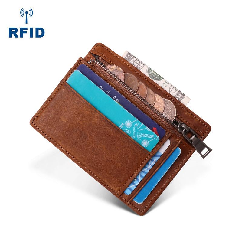 Design: Cool Leather Anti-Theft Ultra Slim Zipper Wallet billfold Wallet One Fold Card Wallets For Men