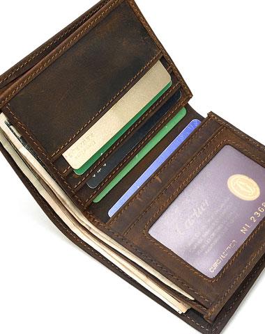 Design: Cool Leather Mens Small Bifold Wallet billfold Wallet Front Pocket Wallets for Men