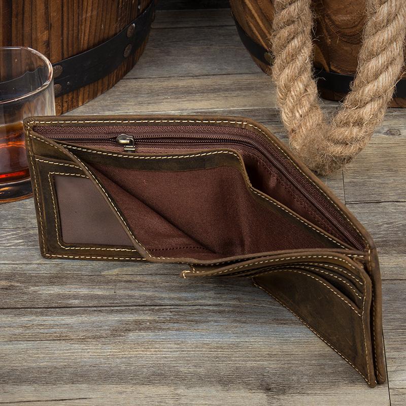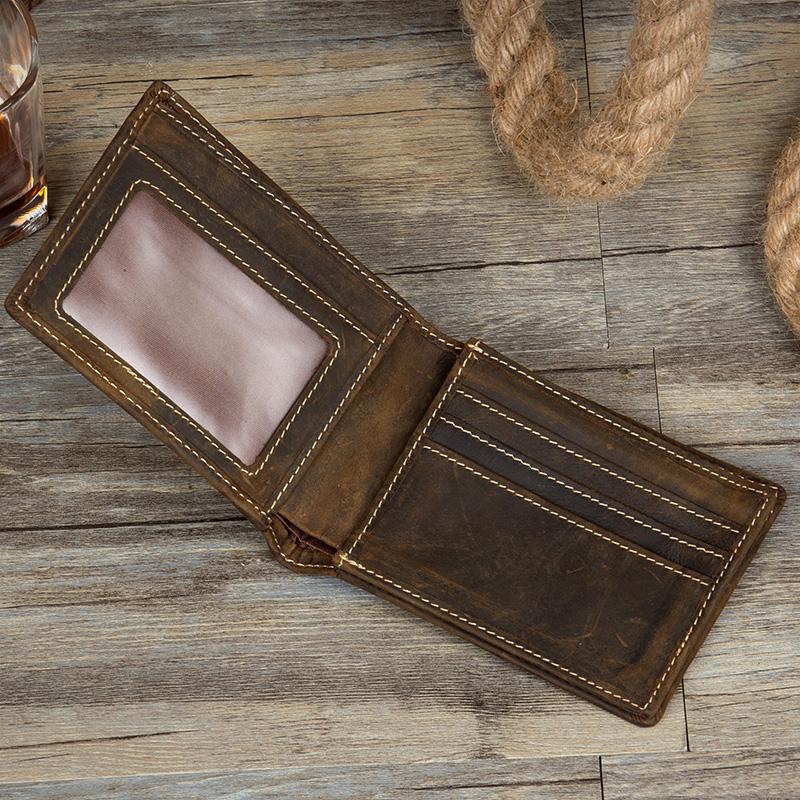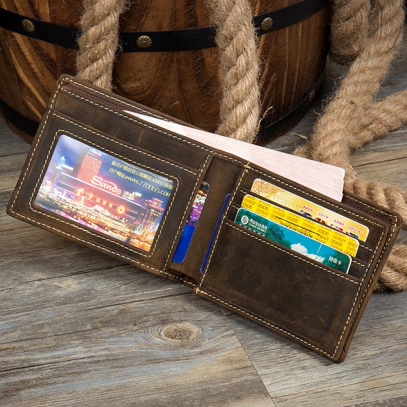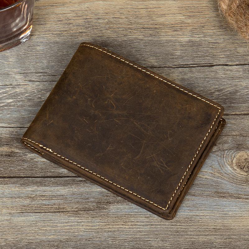 Design: Dark Brown Cool Leather Mens Card Holder Thin Front Pocket Wallet Bifold Slim Card Wallets for Men