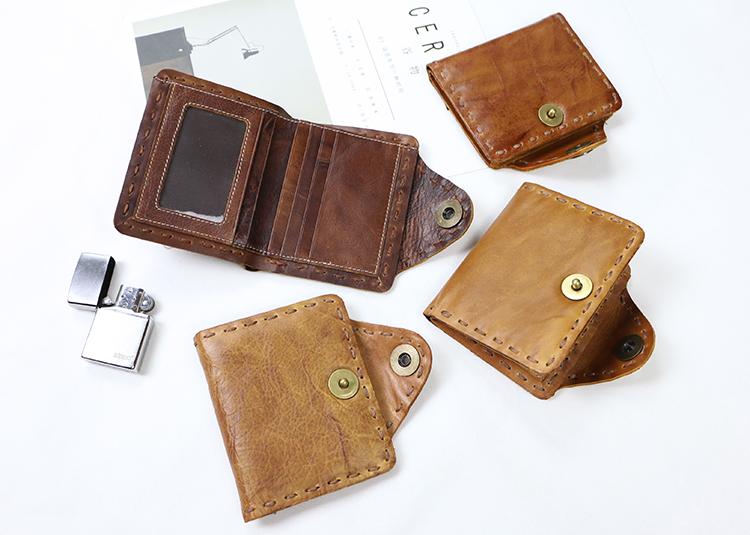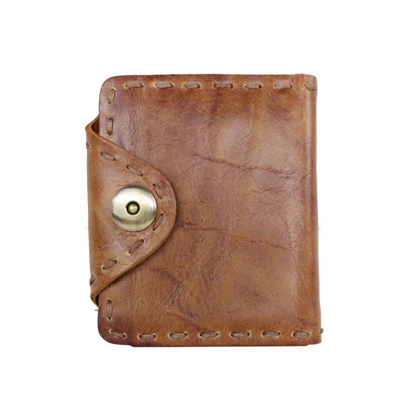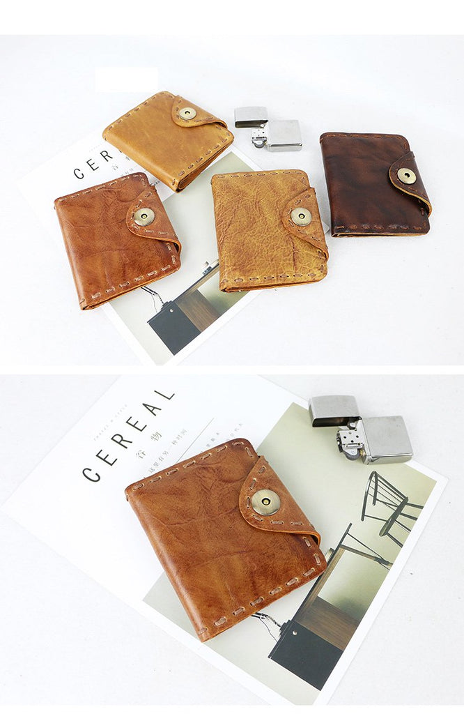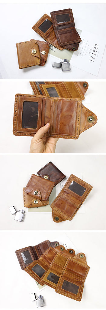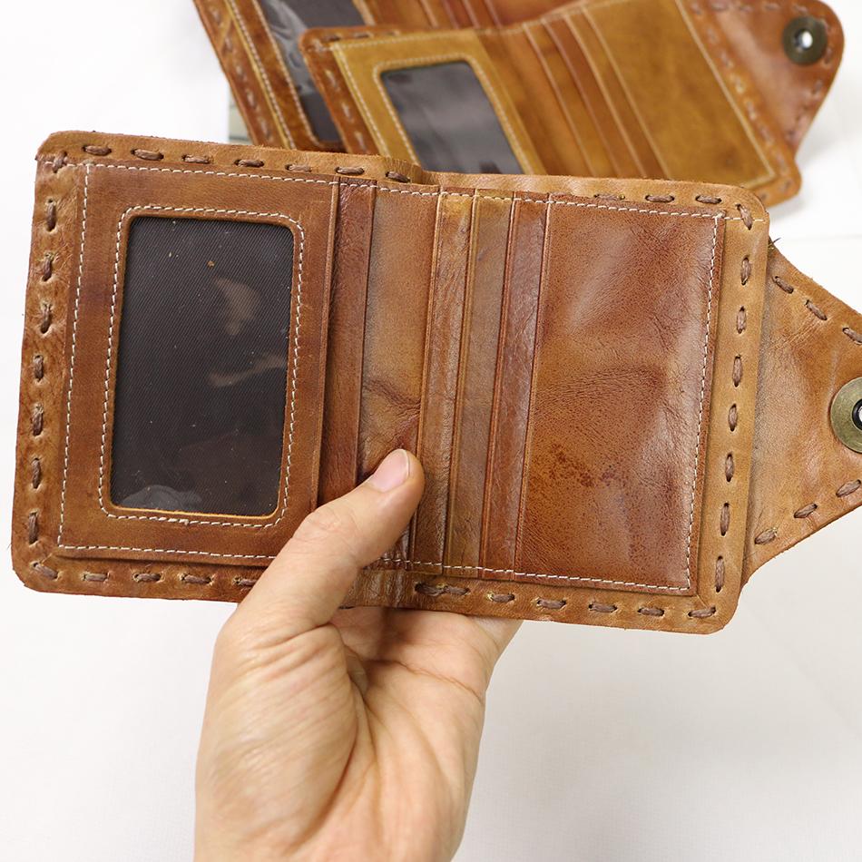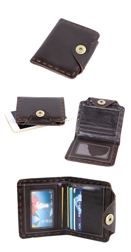 Style: Dark Brown Handmade Leather Mens Card Wallet Small Bifold Card Holder Front Pocket Wallet For Men