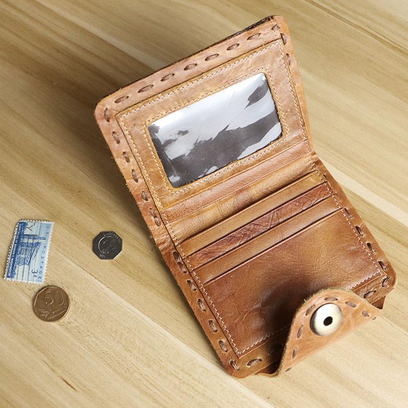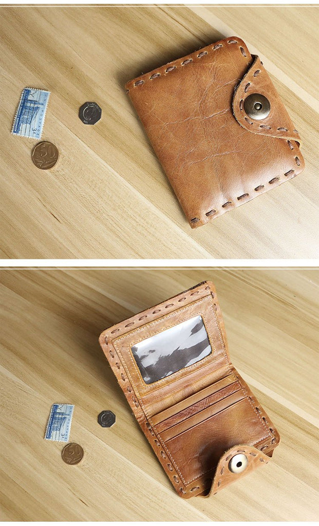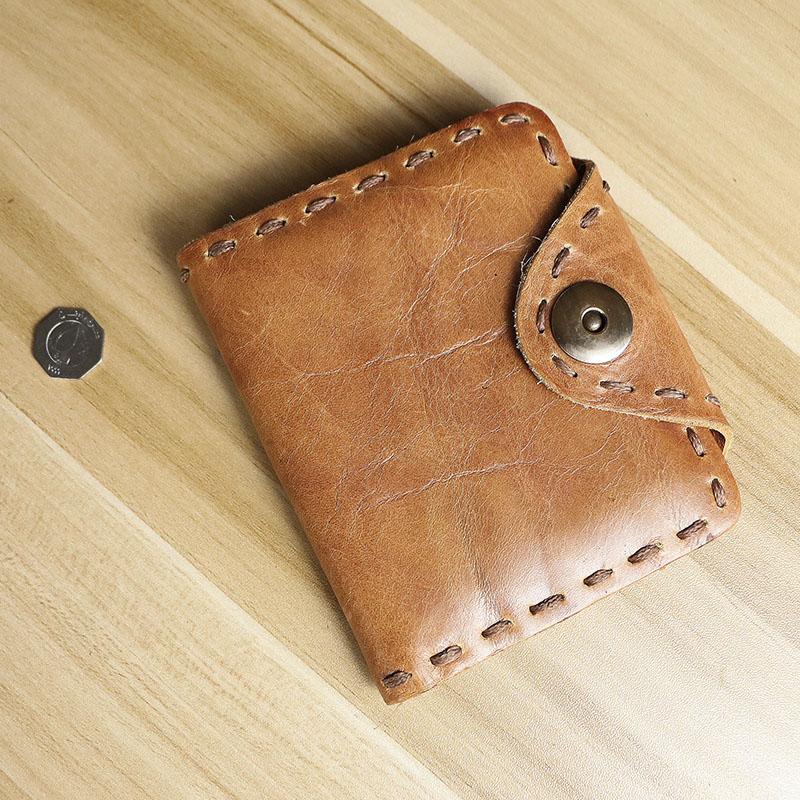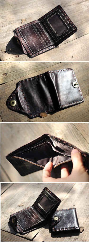 Design: Dark Brown Handmade Leather Mens Card Wallet Small Bifold Card Holder Front Pocket Wallet For Men