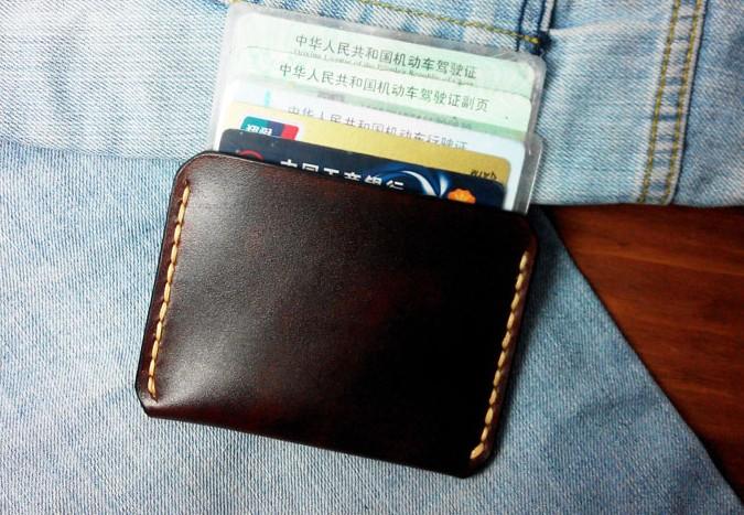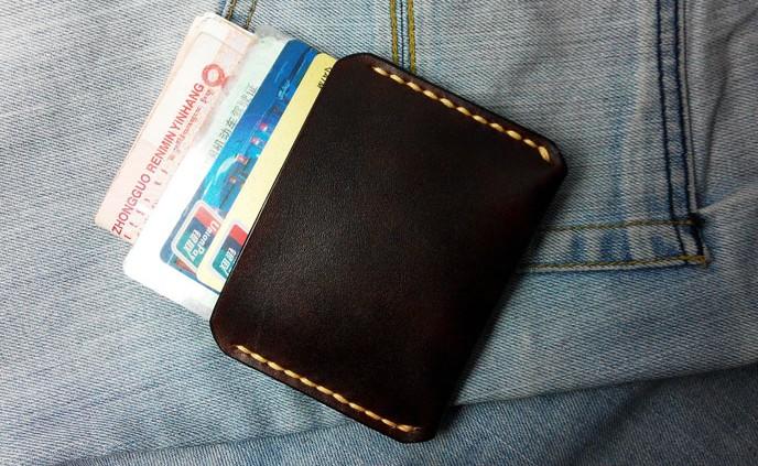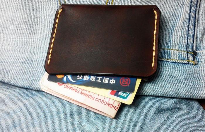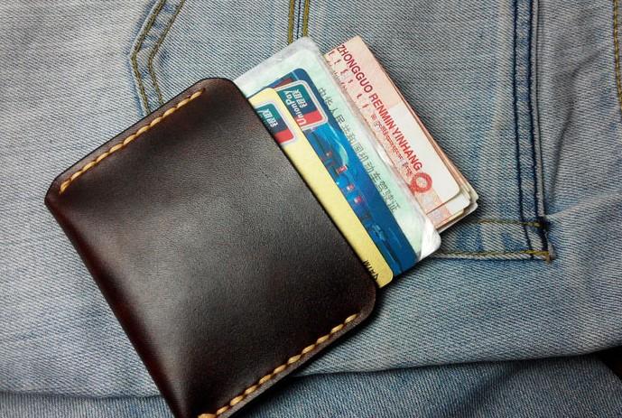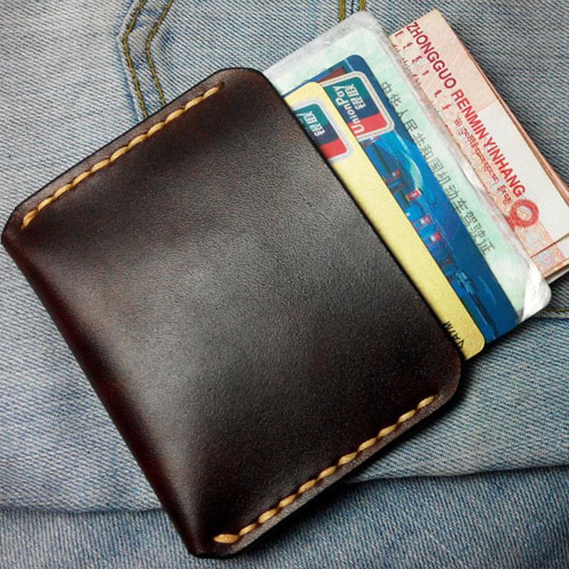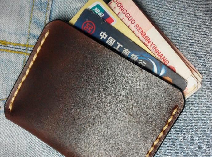 Design: Dark Brown Leather Mens Slim Front Pocket Wallets Leather Cards Wallet for Men