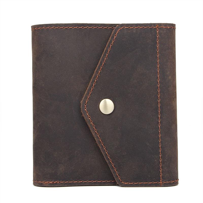 Design: Dark Brown Small MENS LEATHER Bifold Wallet Coin Purse Brown billfold Wallet FOR MEN
