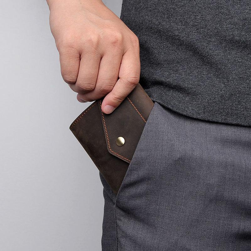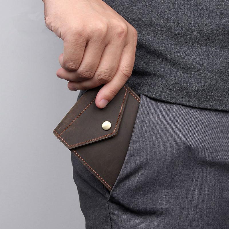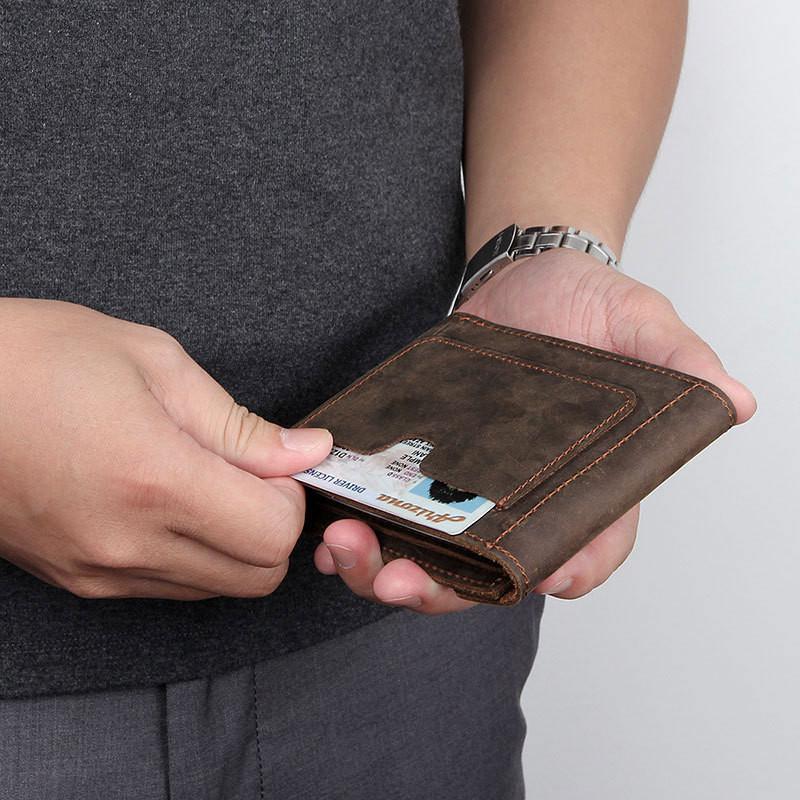 Dark Brown Small MENS LEATHER Bifold Wallet Card Brown billfold Wallet FOR MEN