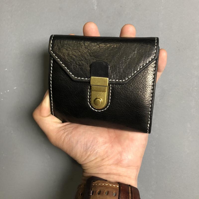 Genuine Leather Coffee Mens Cool Envelope billfold Leather Wallet Men Bifold Black Small Wallets for Men
