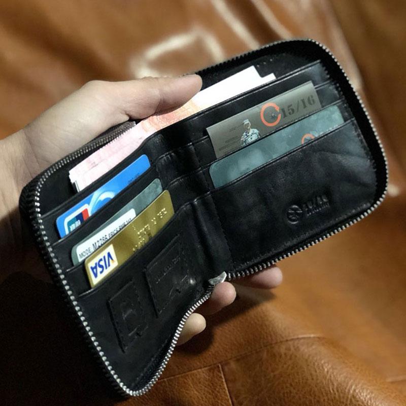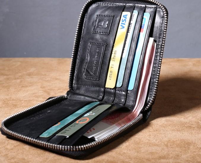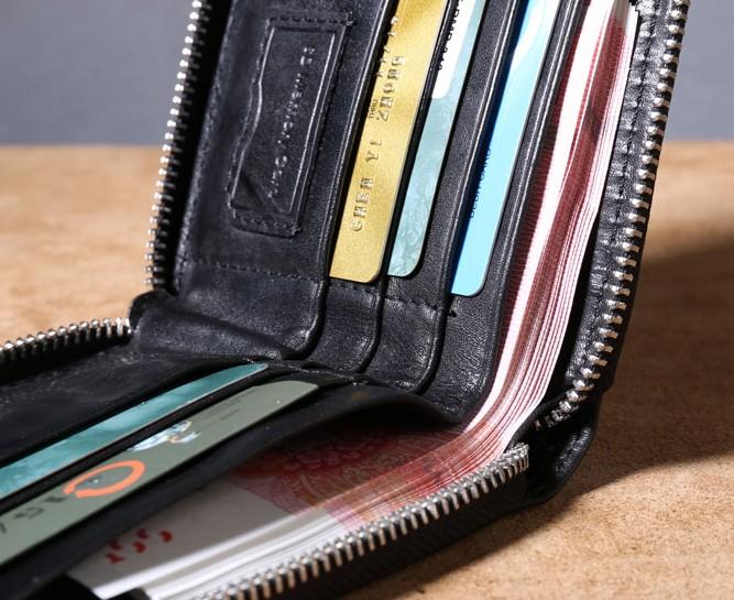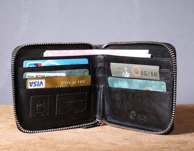 Genuine Leather Mens Cool billfold Leather Wallet Men Zipper Wallet Bifold for Men