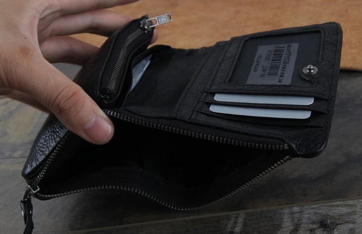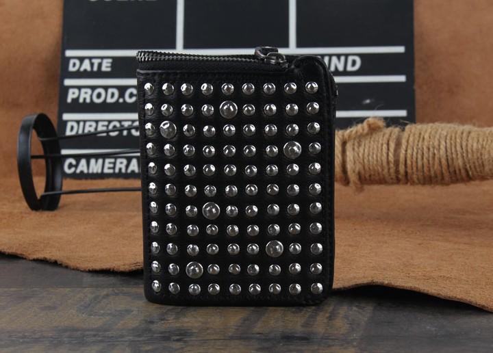 Design: Genuine Leather Mens Cool billfold Punk Rock Leather Wallet Men Small Wallets Bifold for Men