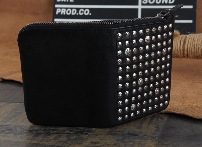 Style: Genuine Leather Mens Cool billfold Punk Rock Leather Wallet Men Small Wallets Bifold for Men