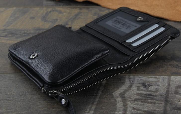 Genuine Leather Mens Cool billfold Punk Rock Leather Wallet Men Small Wallets Bifold for Men