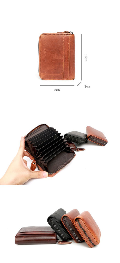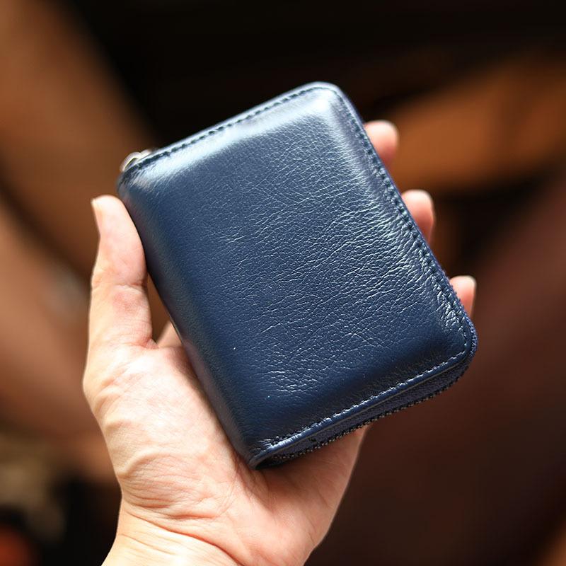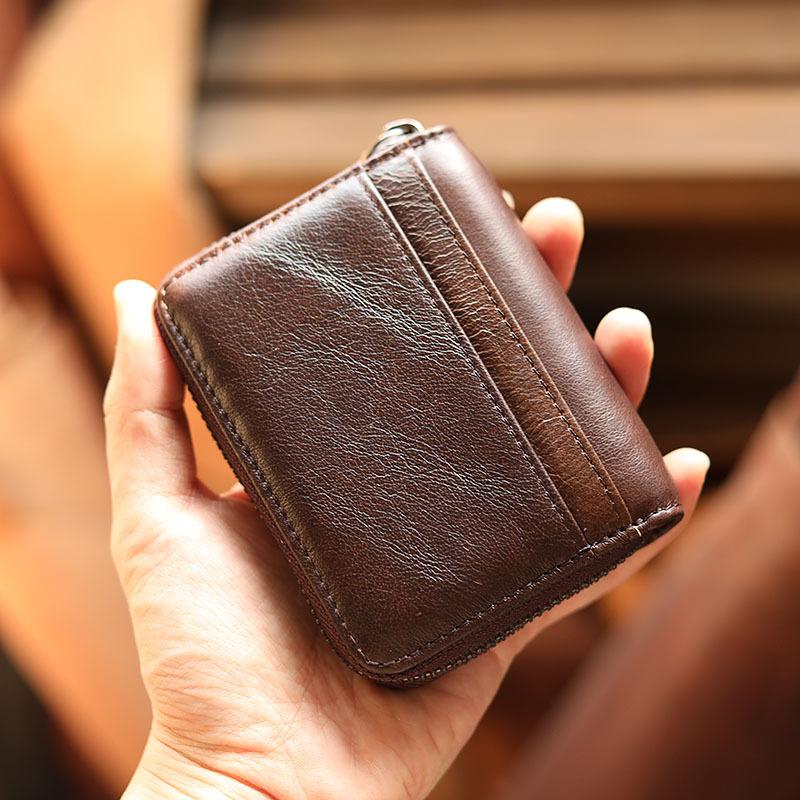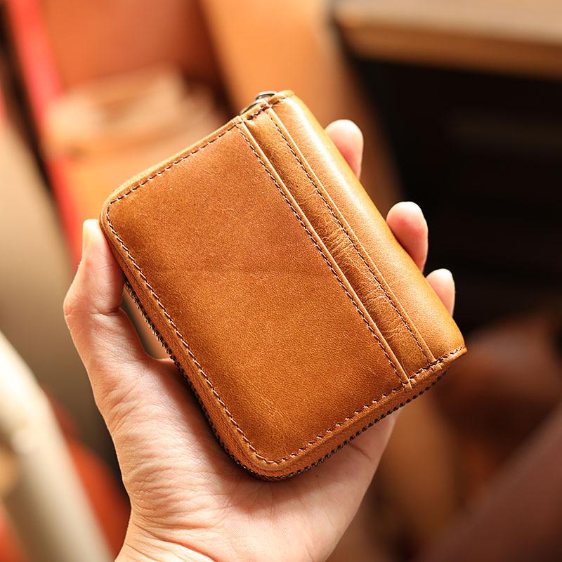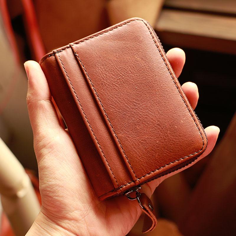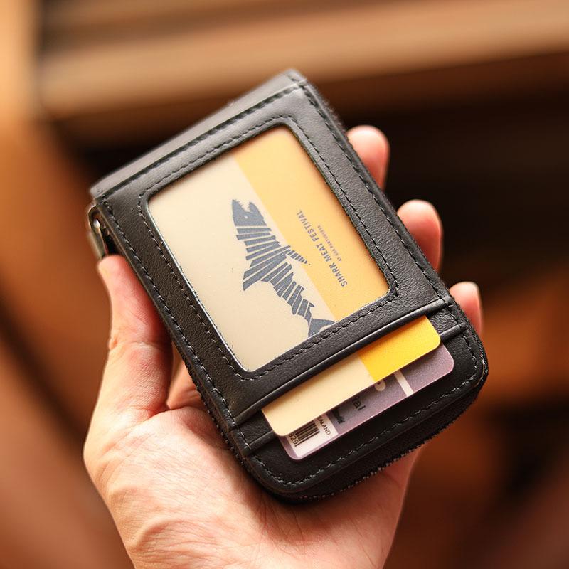 Style: Handmade Black Leather Mens billfold Wallet Zipper Small Card Wallet Front Pocket Wallet For Men
