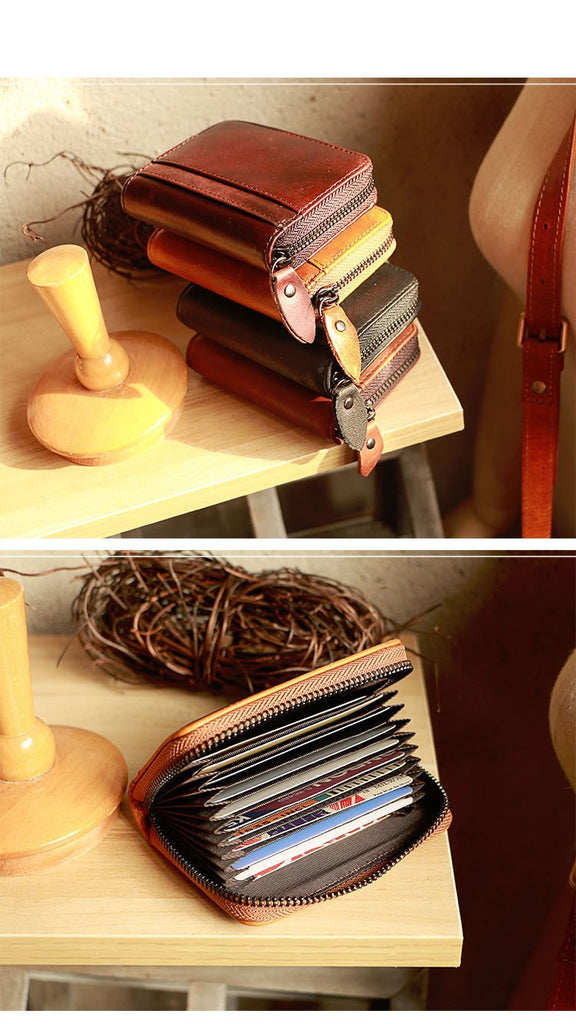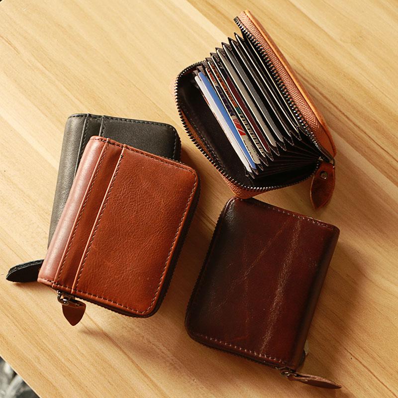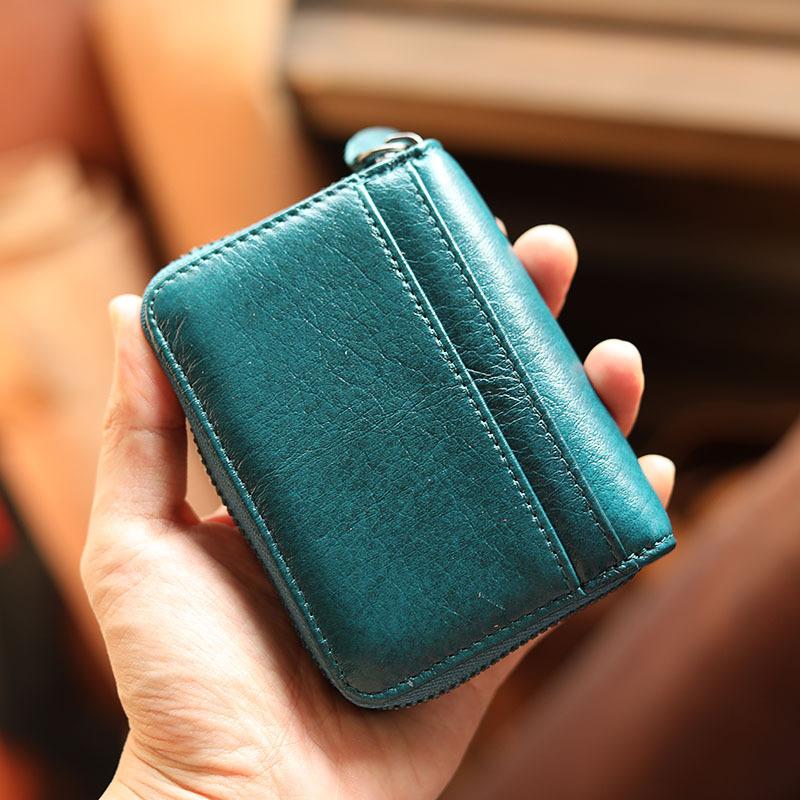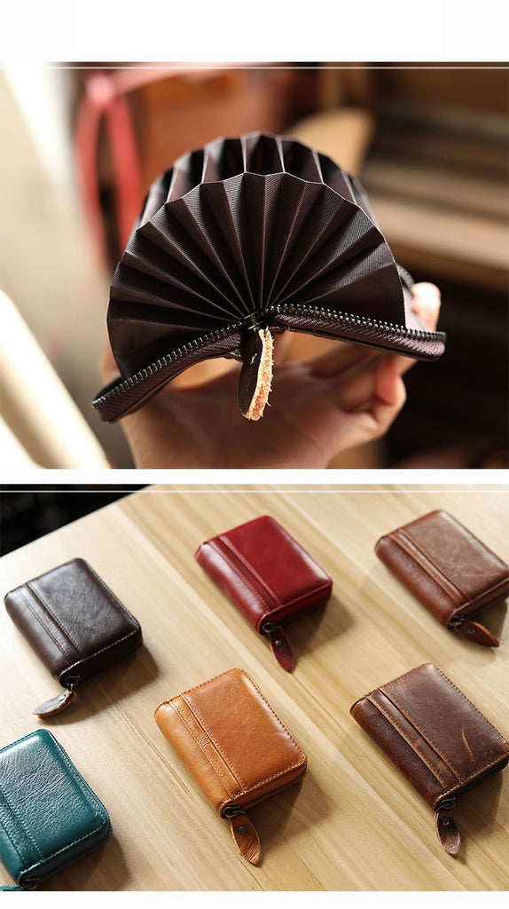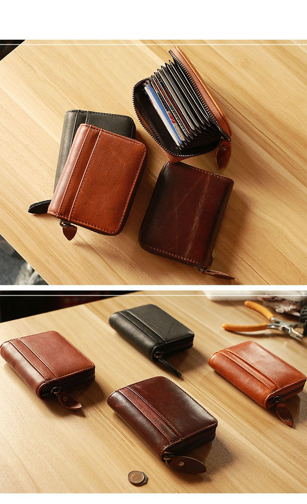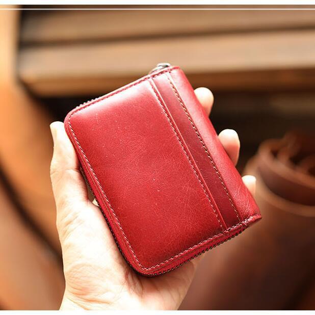 Style: Handmade Black Leather Mens billfold Wallet Zipper Small Card Wallet Front Pocket Wallet For Men