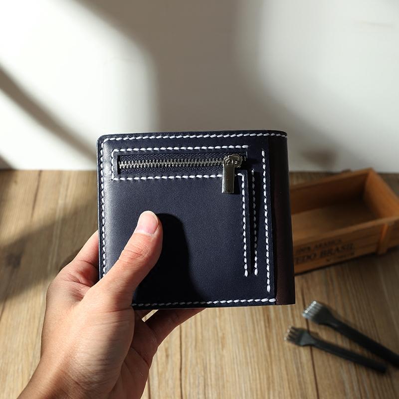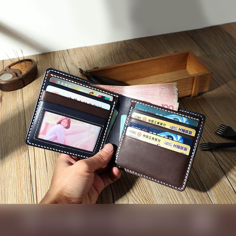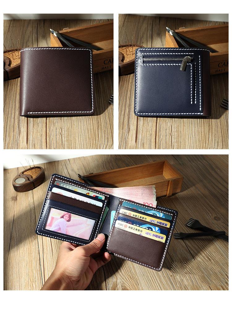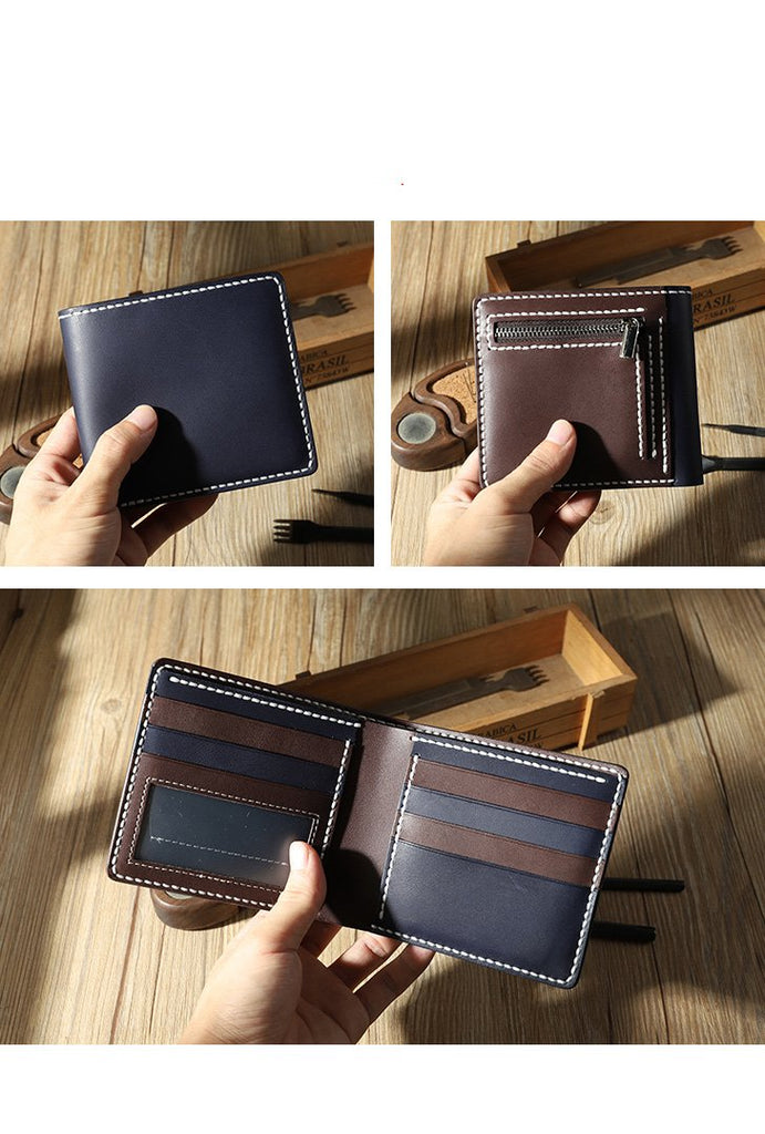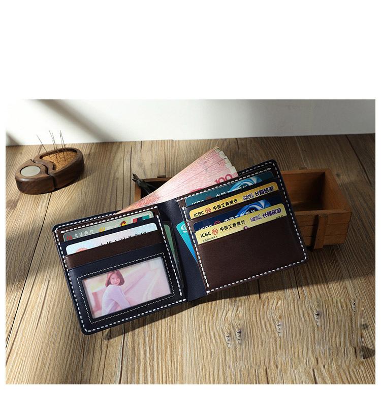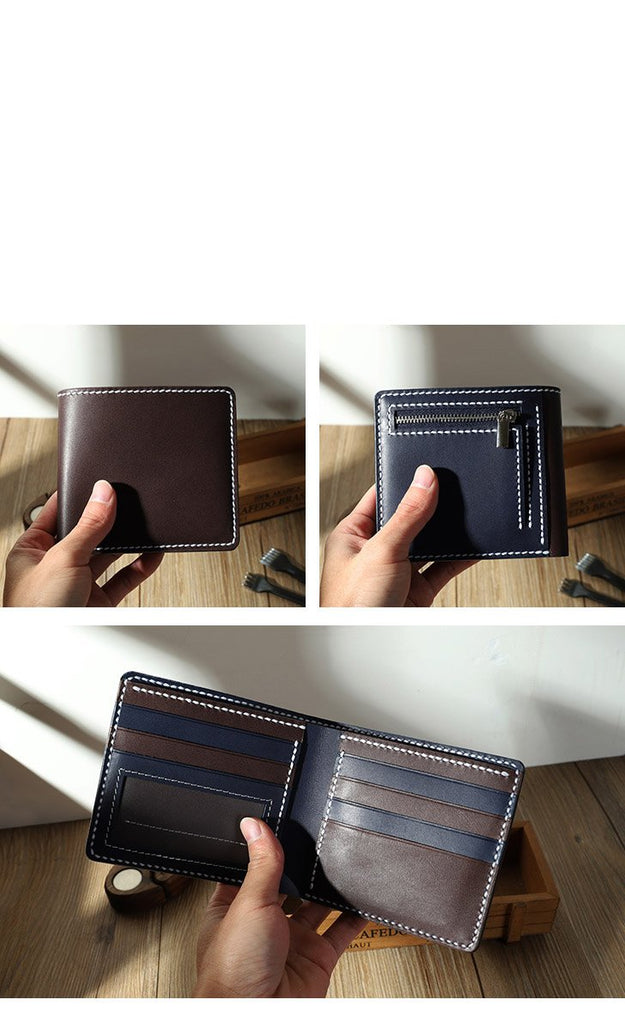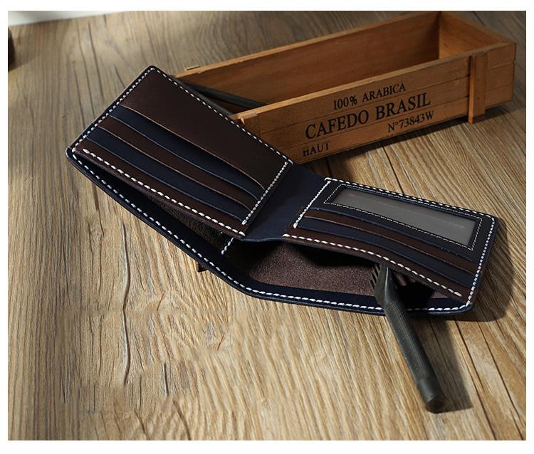 Style: Handmade Coffee Leather Billfold Wallet Personalized Mens Contrast Color Wallets for Men