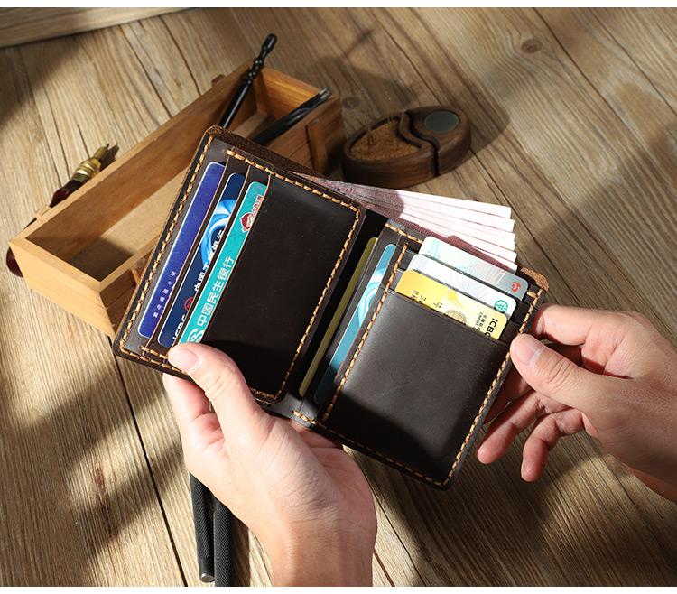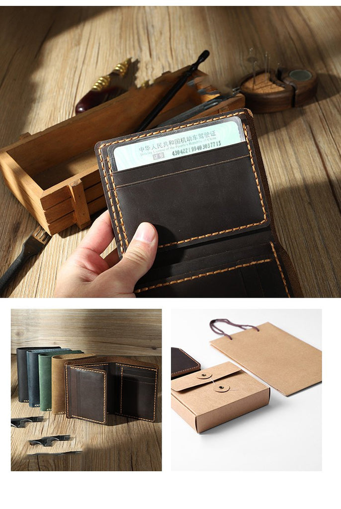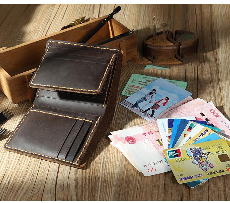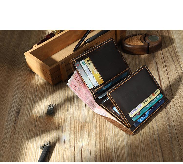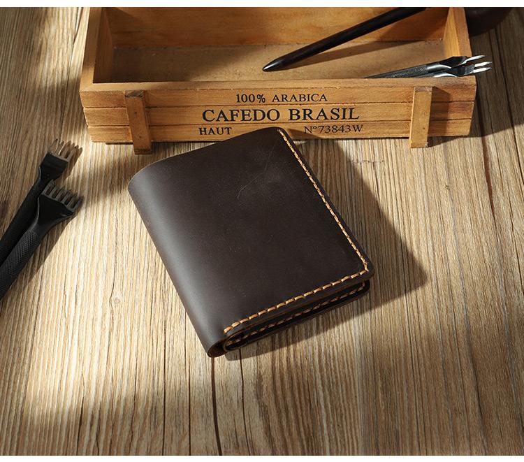 Design: Handmade Coffee Leather Mens Trifold Billfold Personalized Trifold Small Wallets for Men