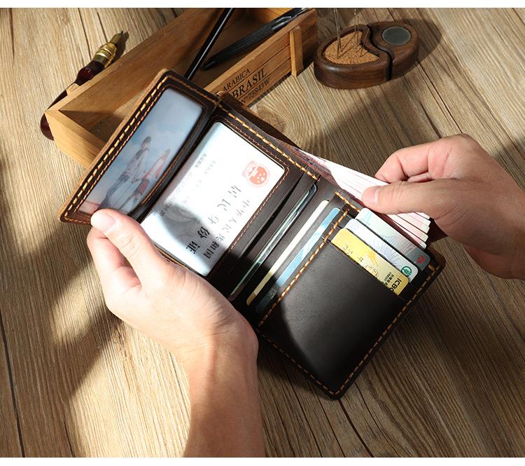 Style: Handmade Coffee Leather Mens Trifold Billfold Personalized Trifold Small Wallets for Men