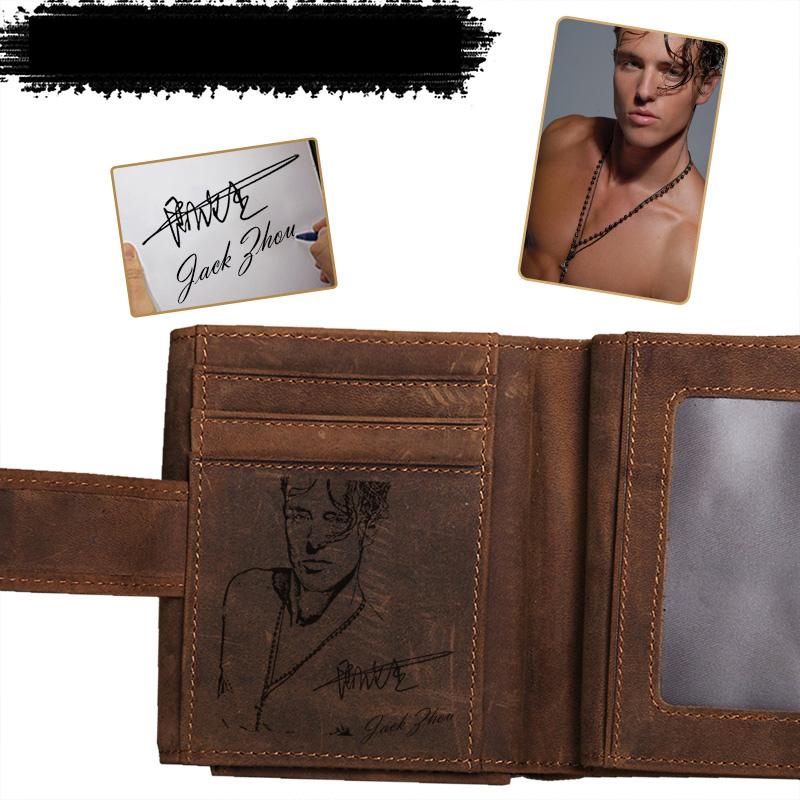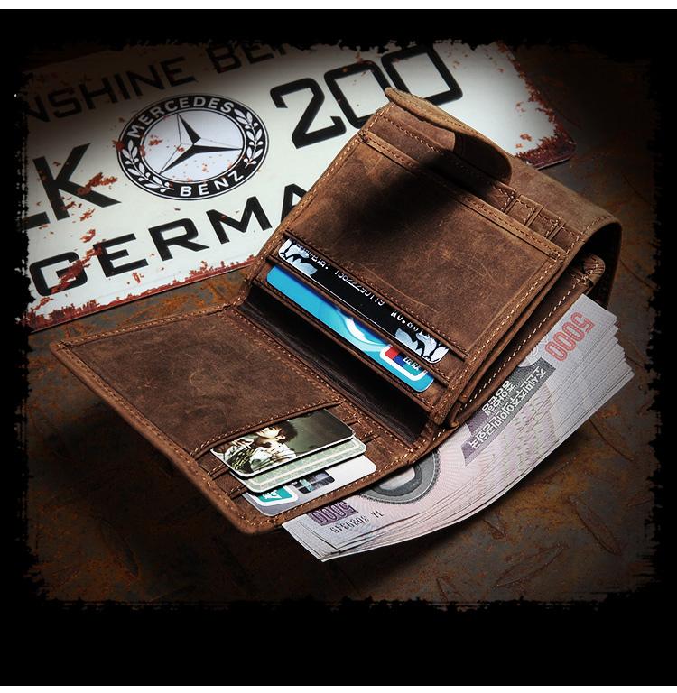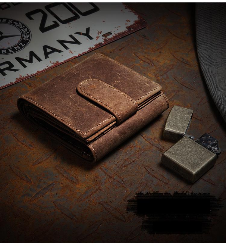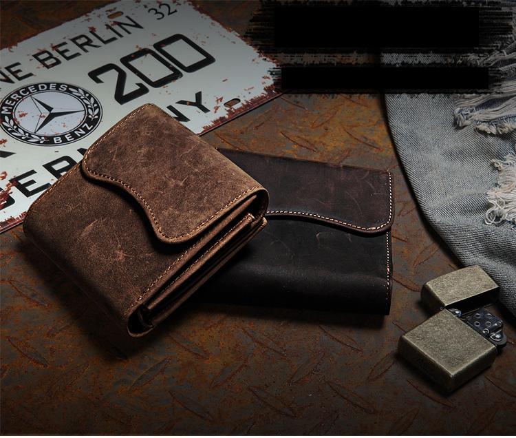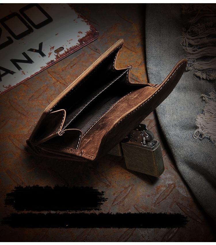 Design: Handmade Brown Leather Men Trifold Billfold Wallet With Coin Pocket Small Wallet for Men
