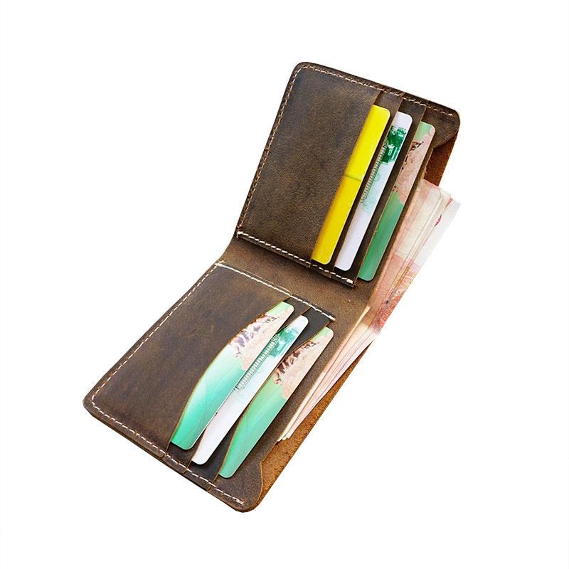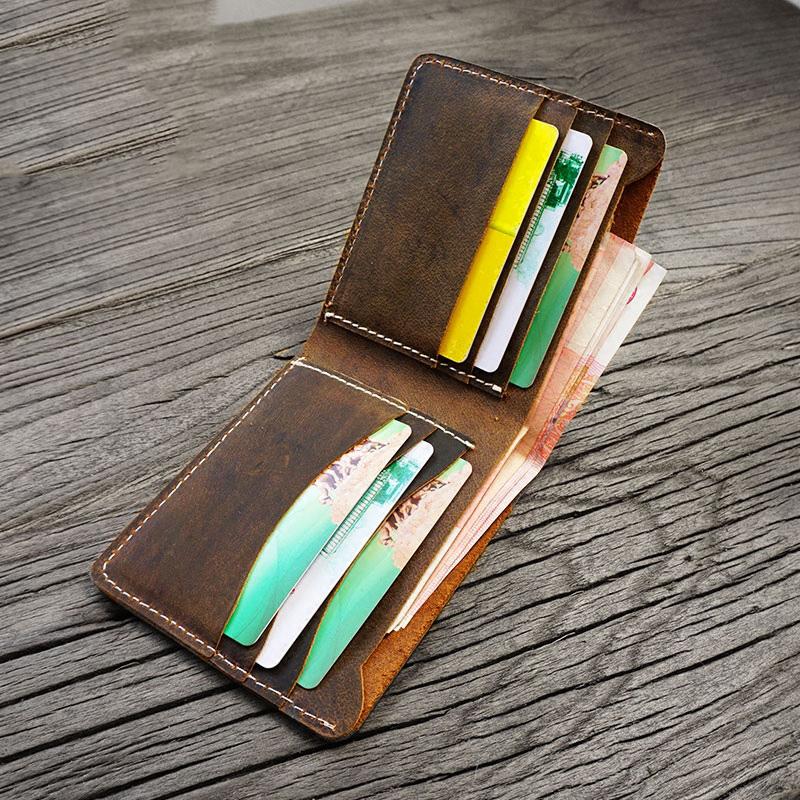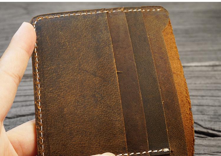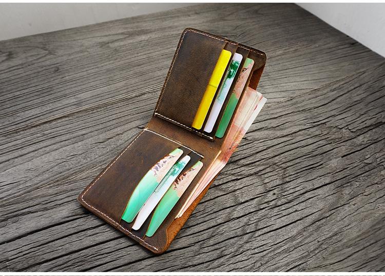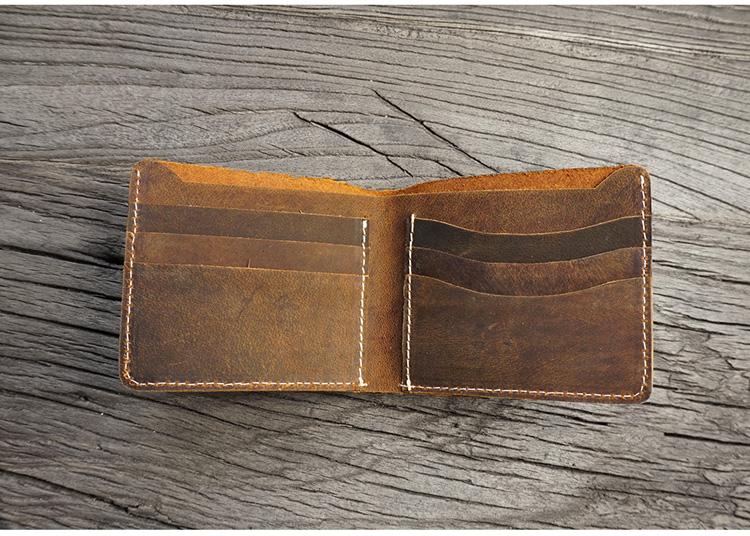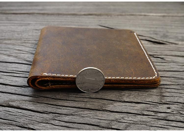 Design: Handmade Brown Leather Mens Billfold Wallets Slim Brown Bifold Small Wallet for Men