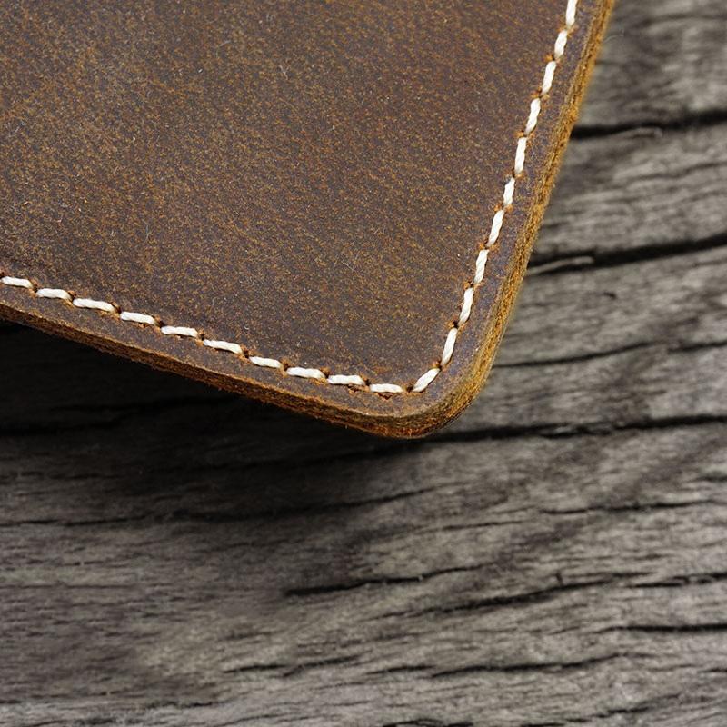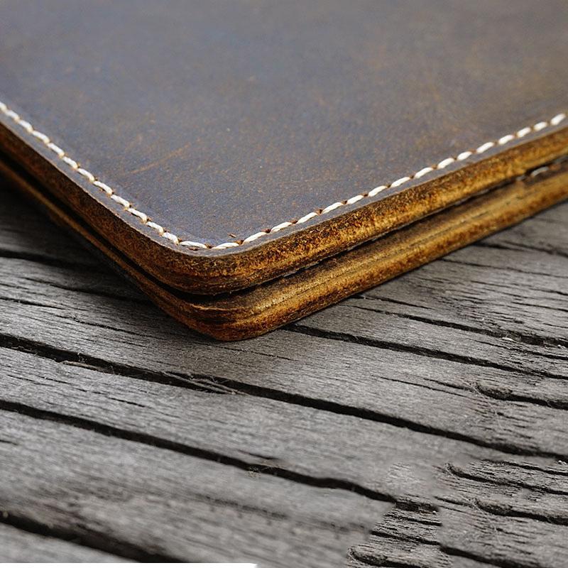 Handmade Brown Leather Mens Billfold Wallet Slim Brown Bifold Small Wallet for Men