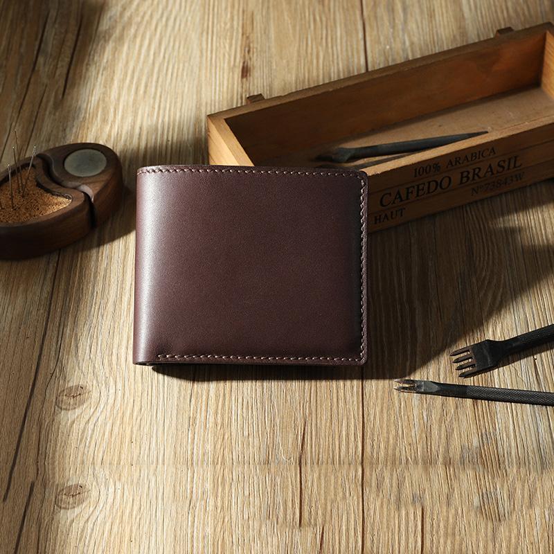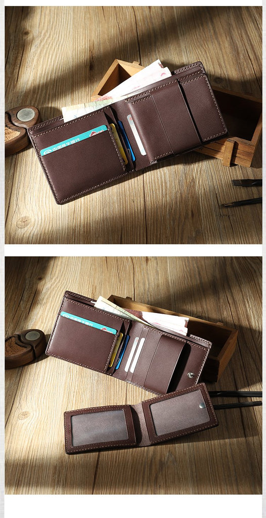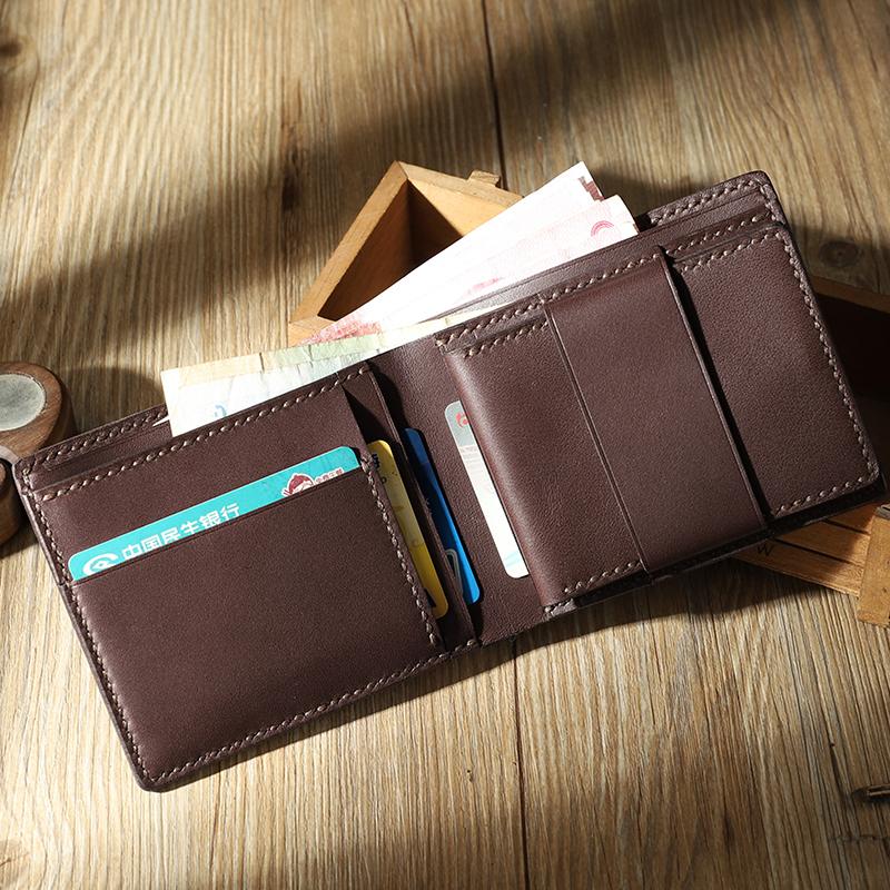 Design: Handmade Coffee Leather Bifold Billfold Wallets Personalized Mens Bifold Wallet for Men
