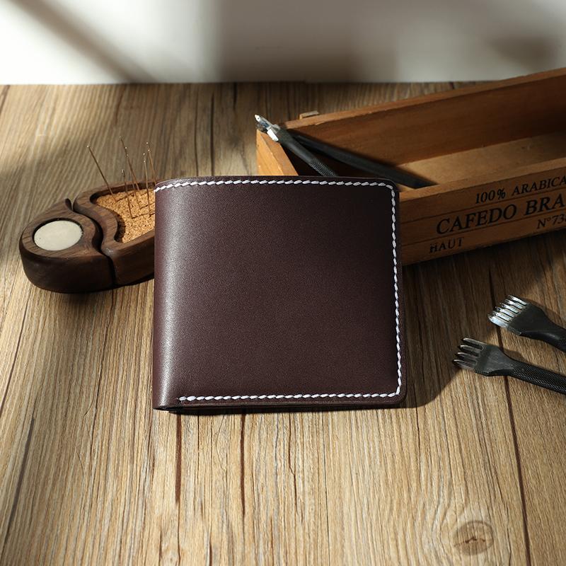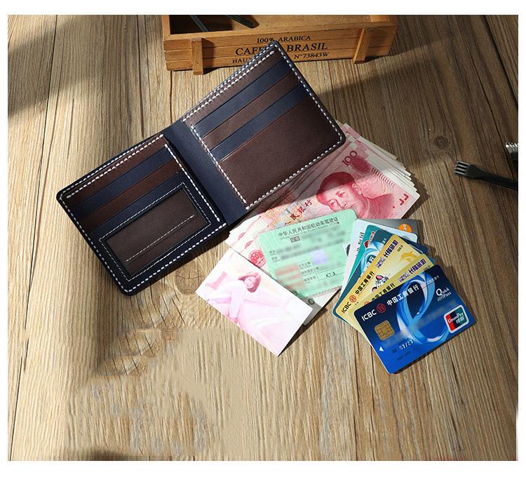 Style: Handmade Coffee Leather Billfold Wallet Personalized Mens Contrast Color Wallets for Men