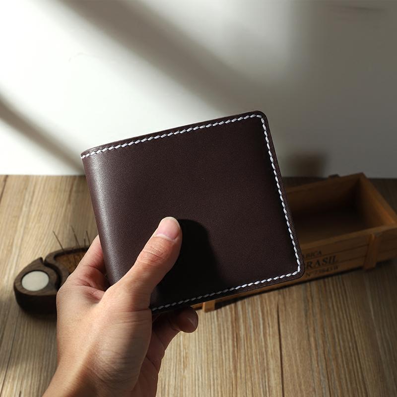 Design: Handmade Coffee Leather Billfold Wallet Personalized Mens Contrast Color Wallets for Men