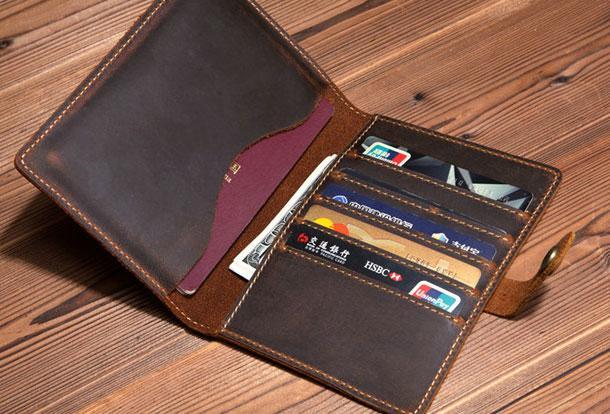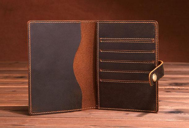 Style: Handmade Mens Leather Small Slim Passport Wallet Vintage Bifold Long Wallet For Men
