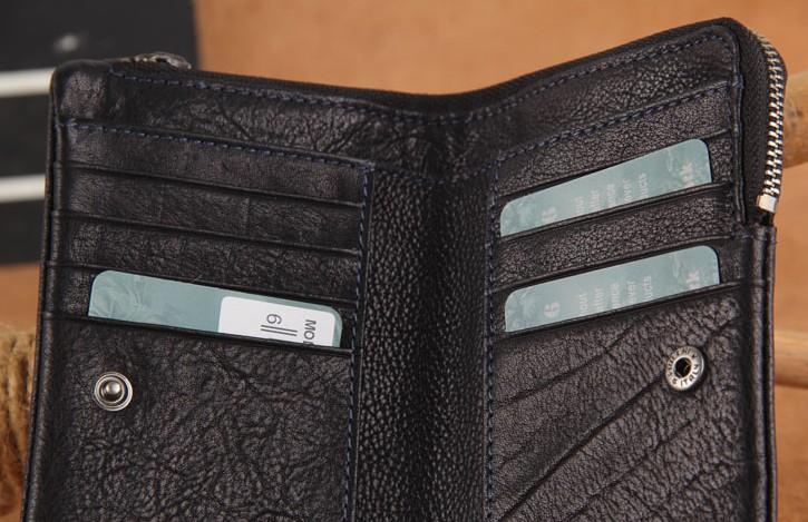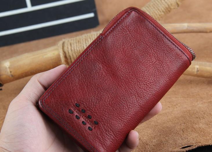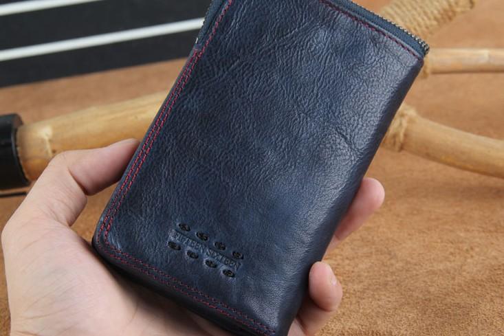 Handmade Genuine Leather Mens Cool Slim Leather Wallet Men Small Wallets Bifold for Men