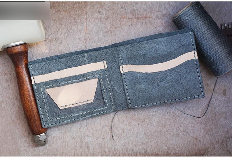 Style: Handmade Blue Leather Mens Bifold Billfold Wallets Slim Blue Small Wallet for Men