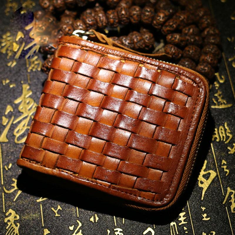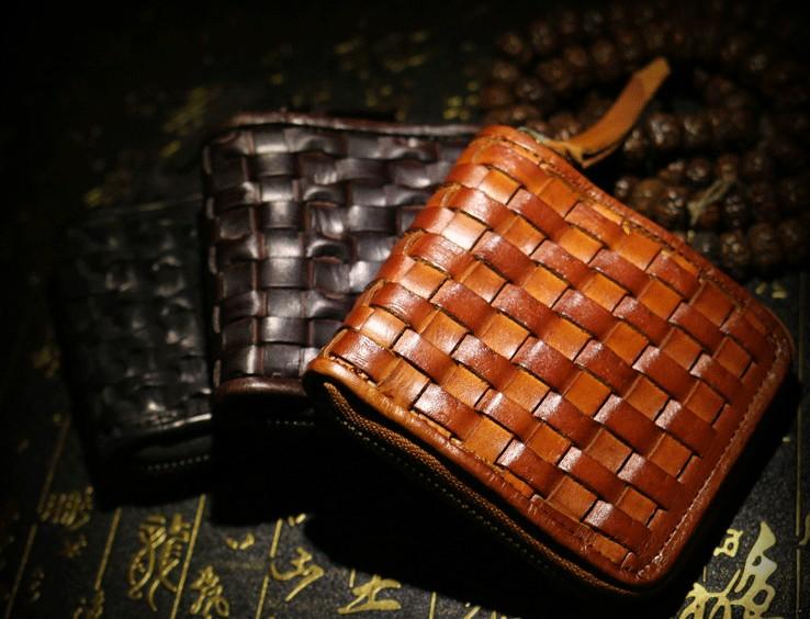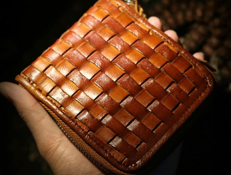 Design: Handmade Leather Braided Mens billfold Wallet Cool Leather Wallet Slim Wallet for Men