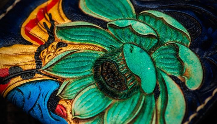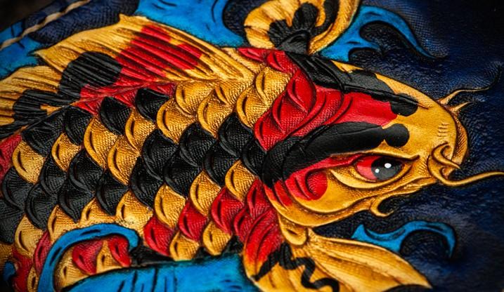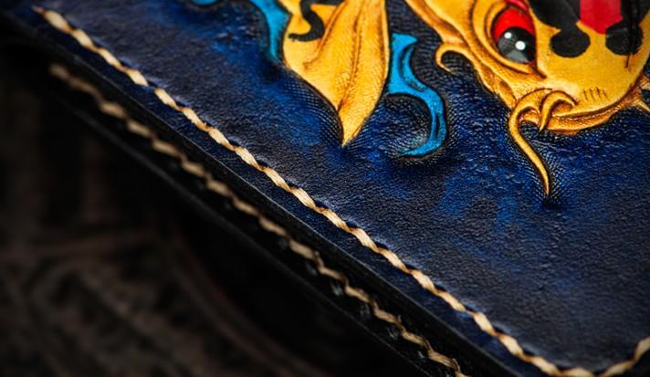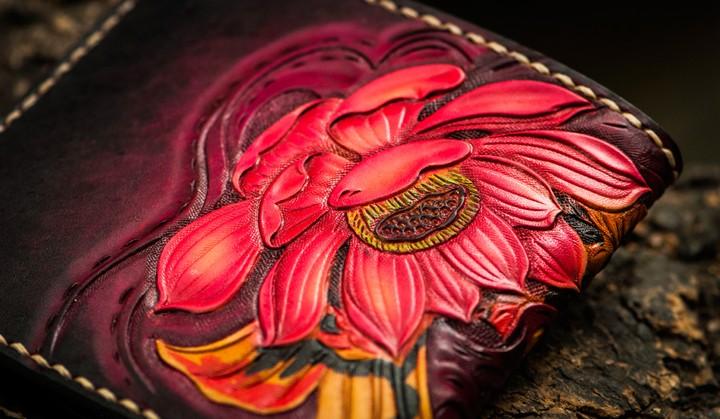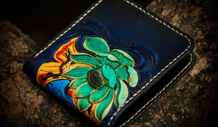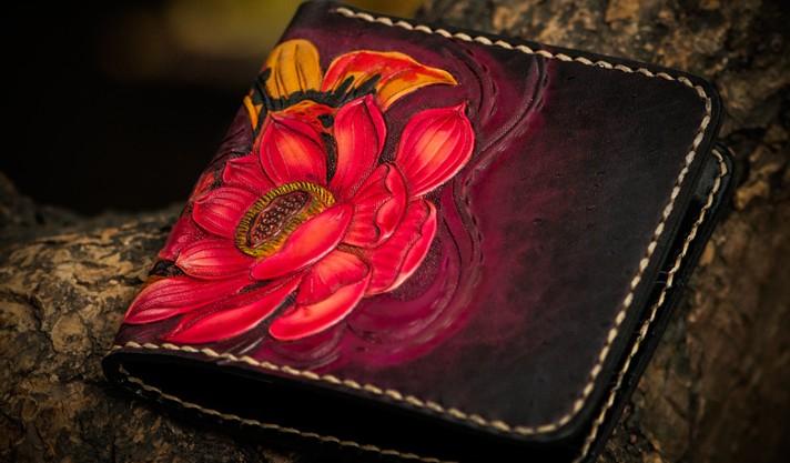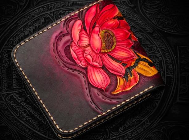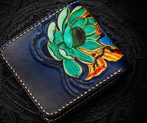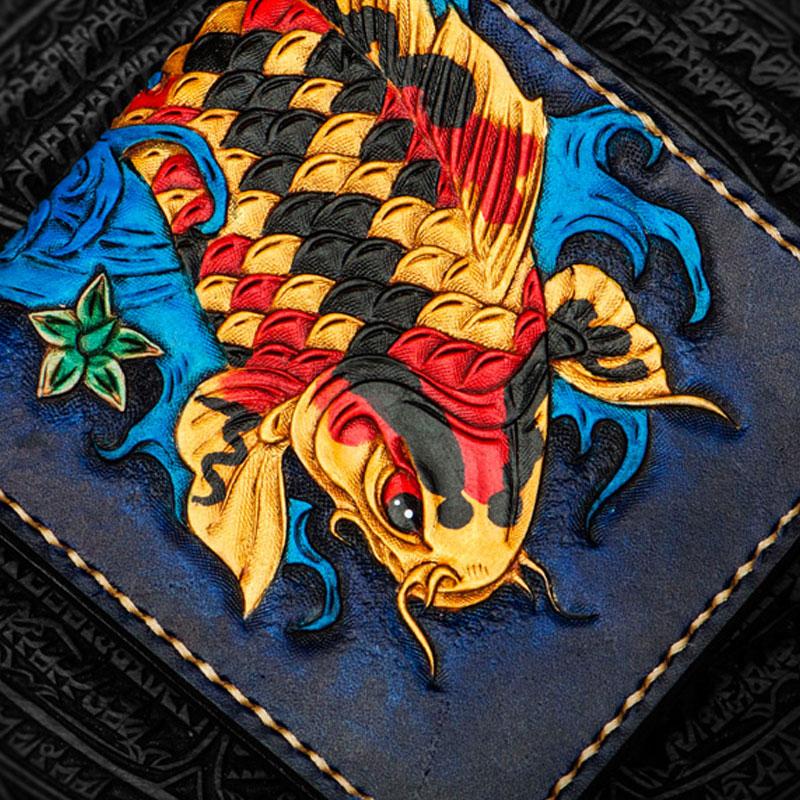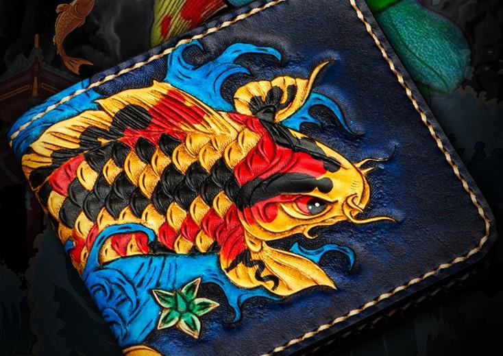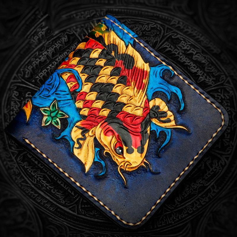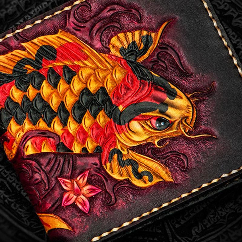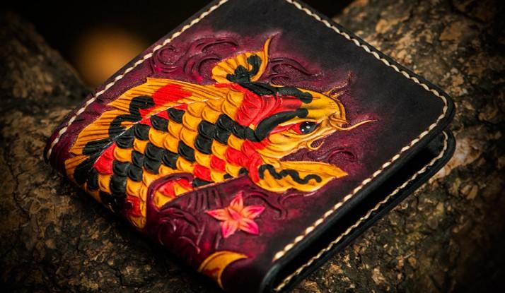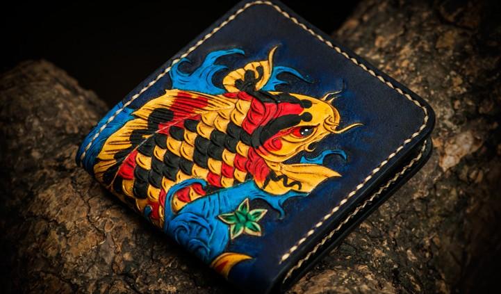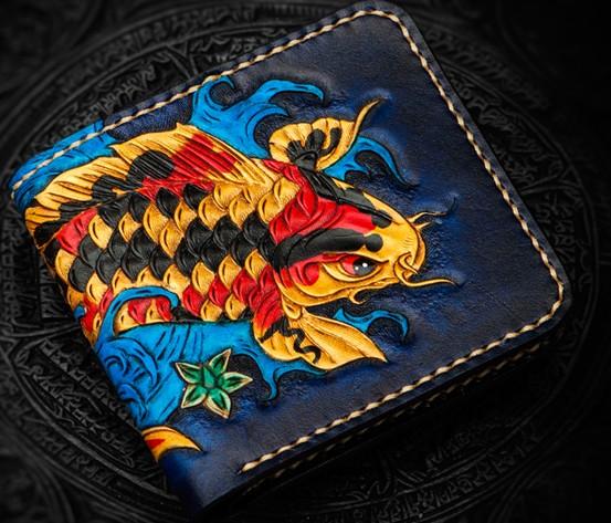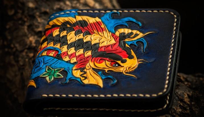 Design: Handmade Leather Carp Tooled Mens billfold Wallet Cool Leather Wallet Slim Wallet for Men