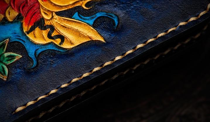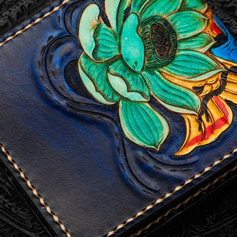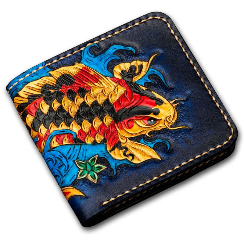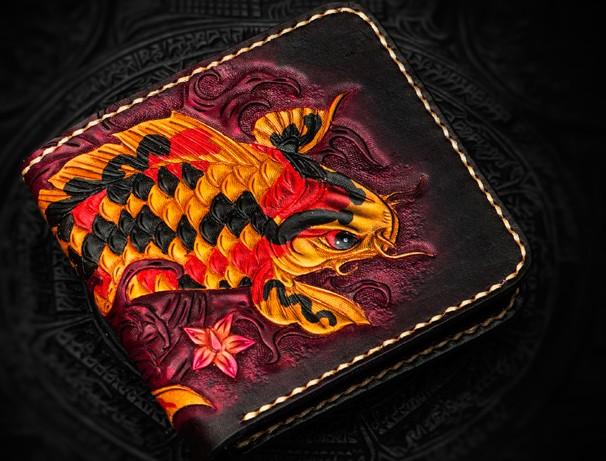 Style: Handmade Leather Carp Tooled Mens billfold Wallet Cool Leather Wallet Slim Wallet for Men