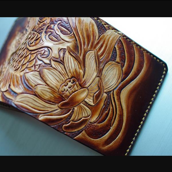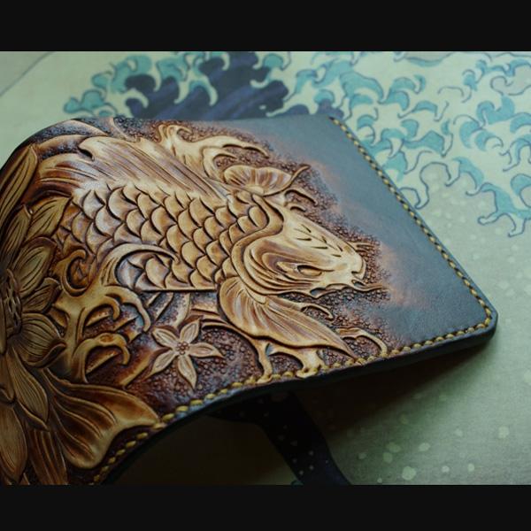 Design: Handmade Leather Carp Tooled Mens billfold Wallet Cool Slim Wallet Biker Wallet for Men