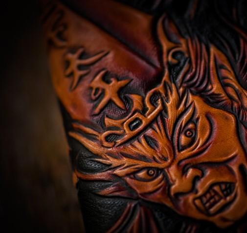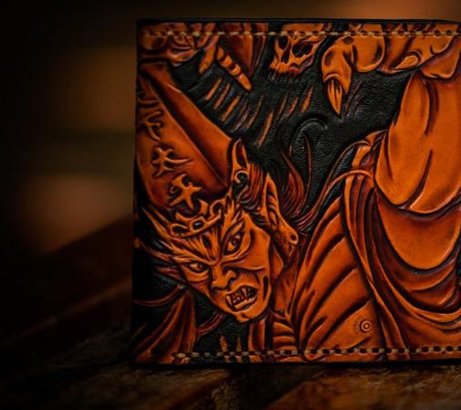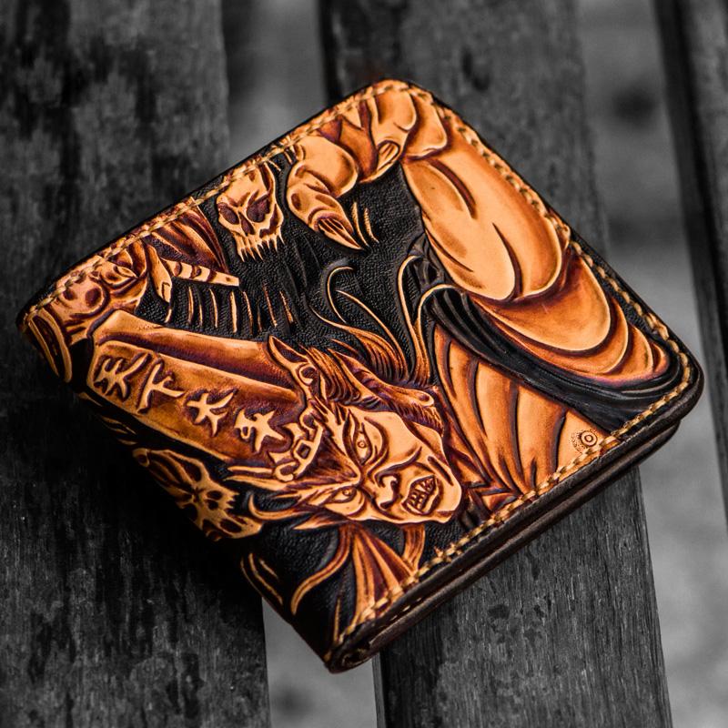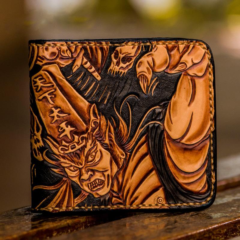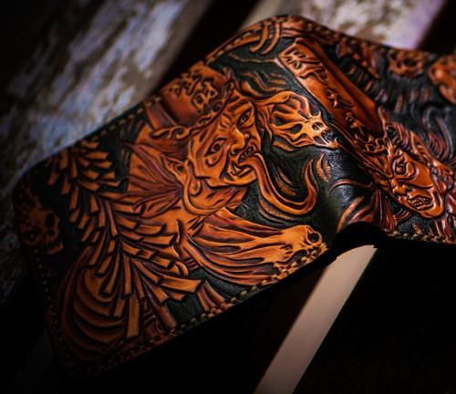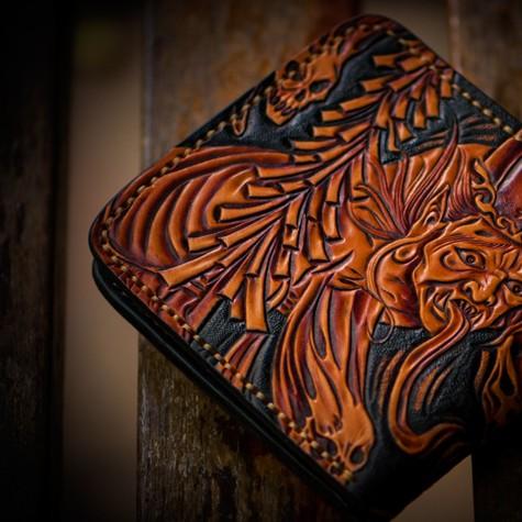 Design: Handmade Leather Chinese Black&White Tooled Mens billfold Wallet Cool Leather Wallet Slim Wallet for Men