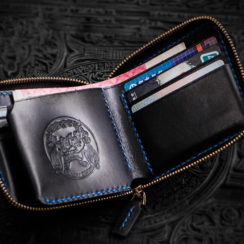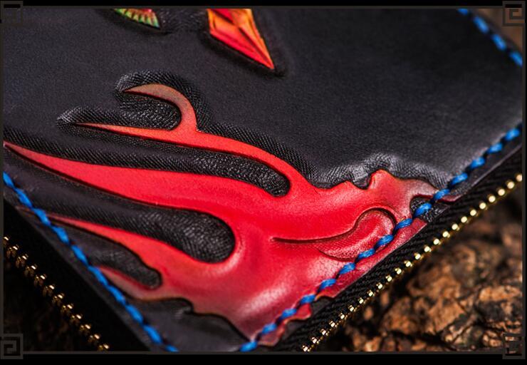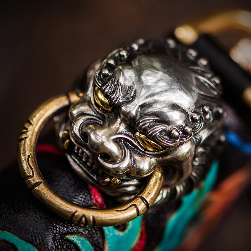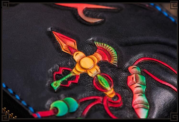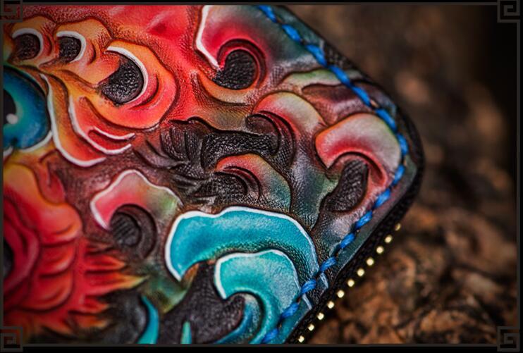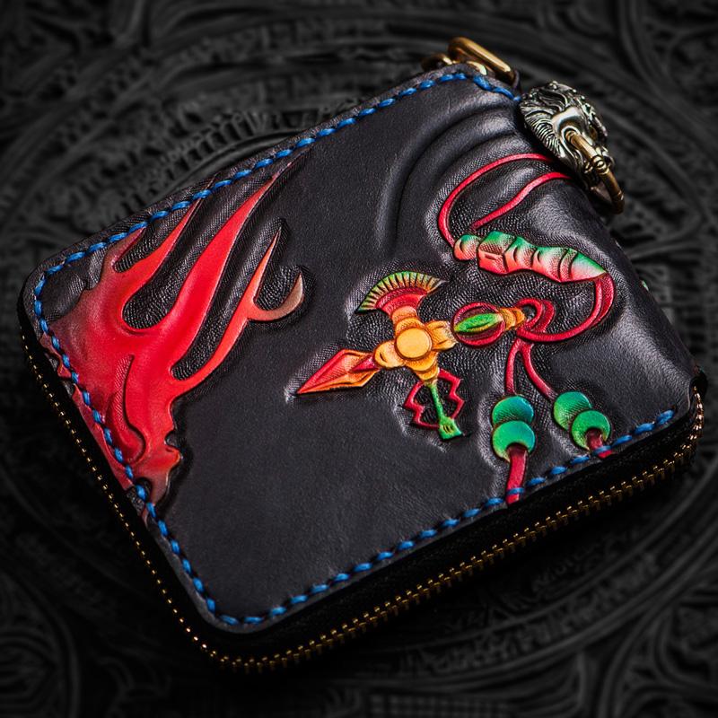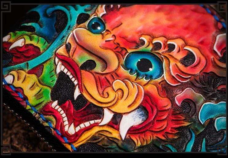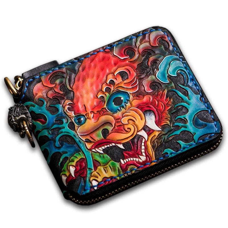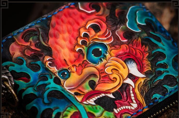 Design: Handmade Leather Chinese Lion Tooled Mens billfold Wallet Cool Chain Wallet Biker Wallet for Men
