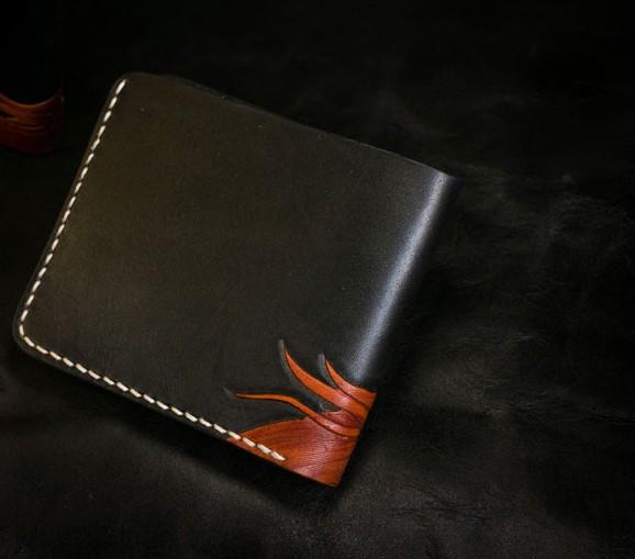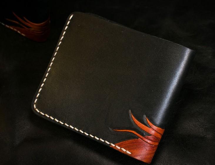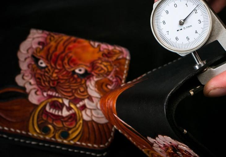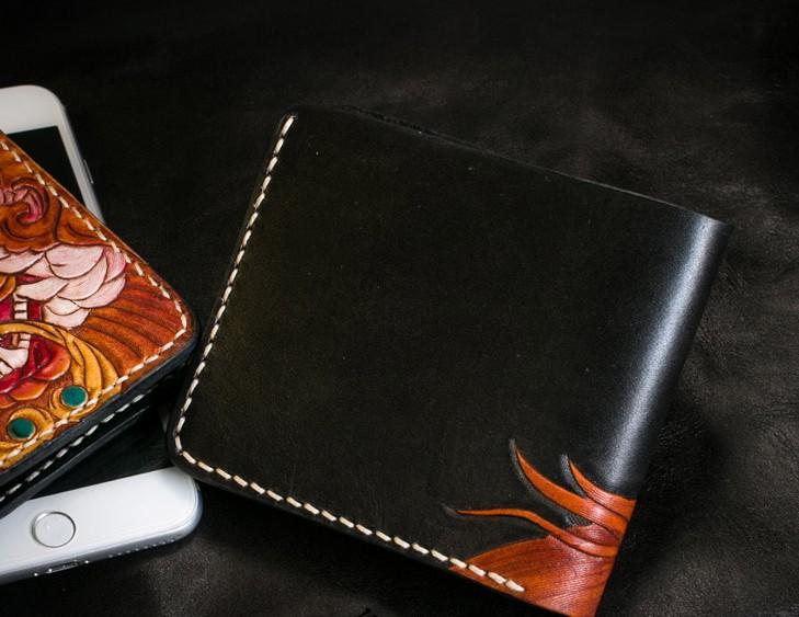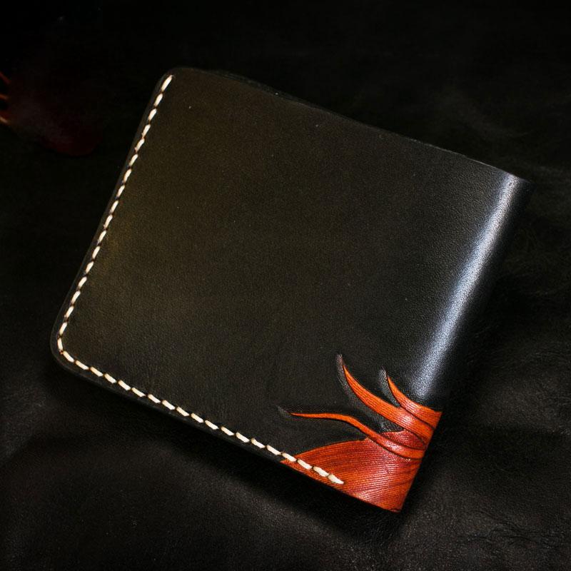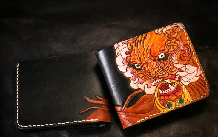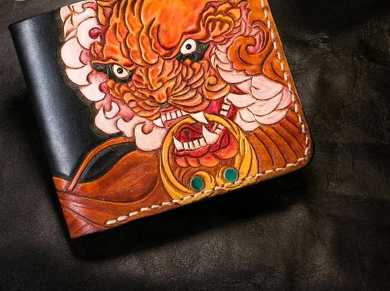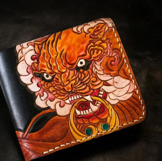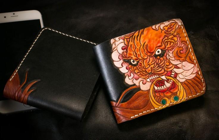 Design: Handmade Leather Chinese Lion Tooled Mens billfold Wallet Cool Leather Wallet Slim Wallet for Men