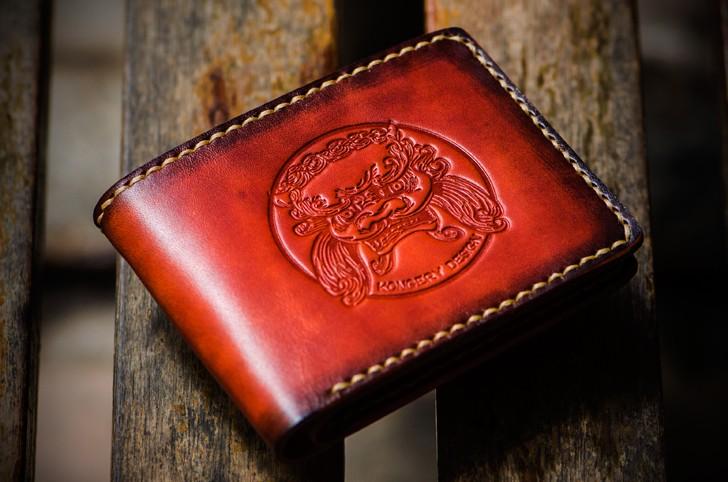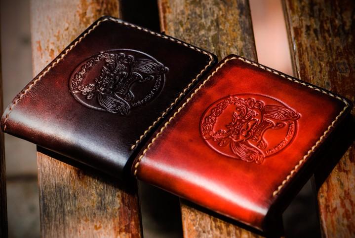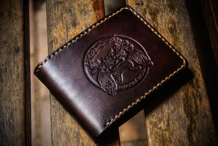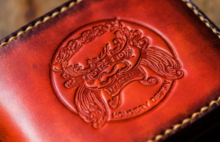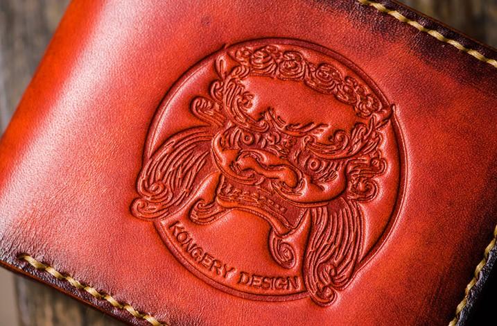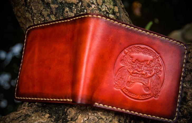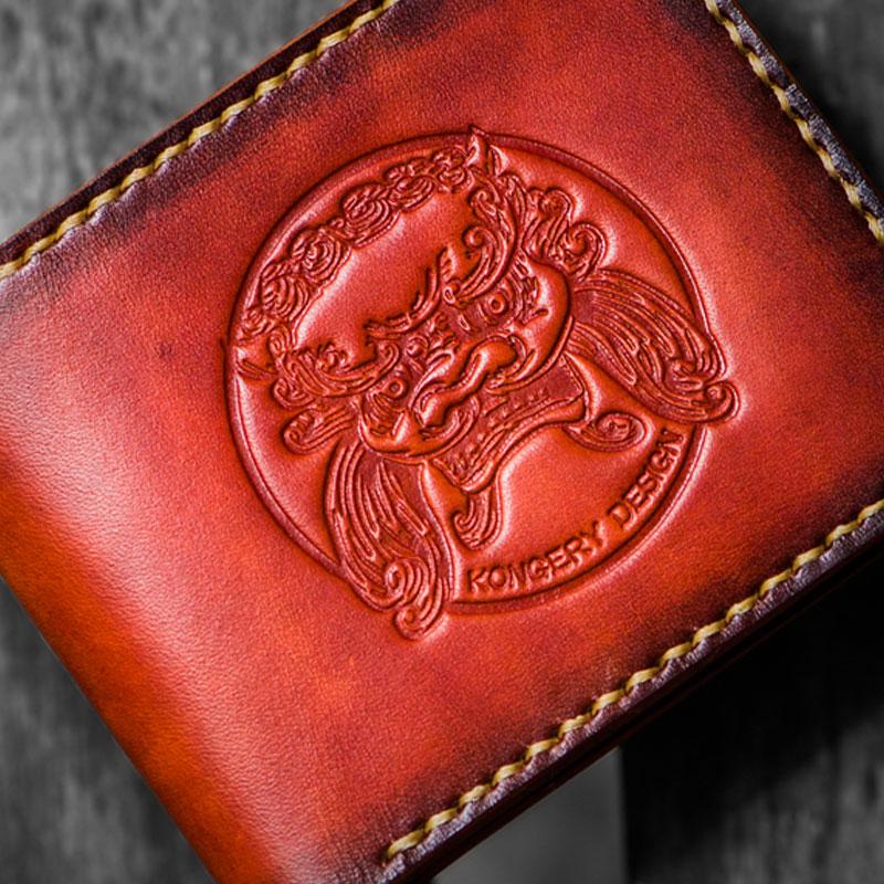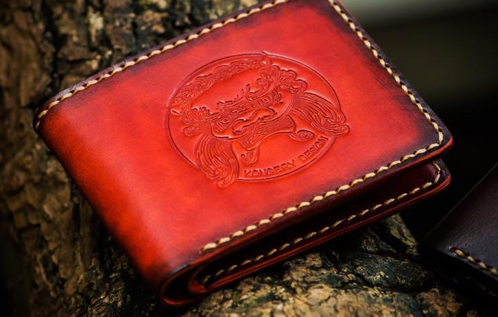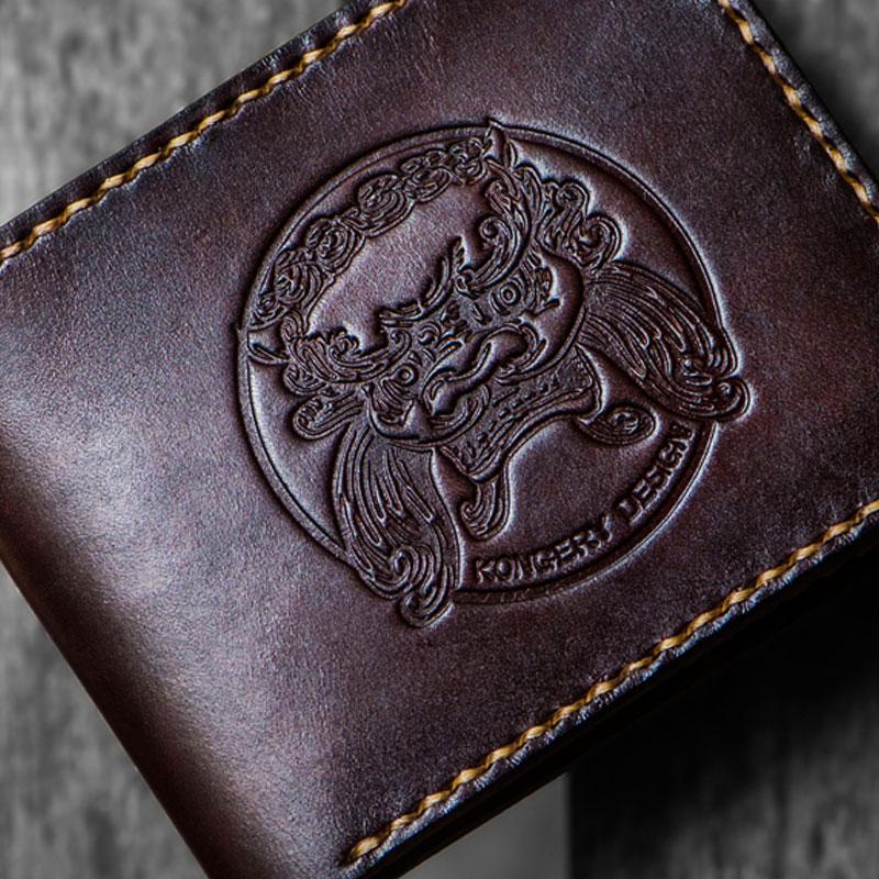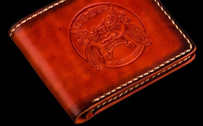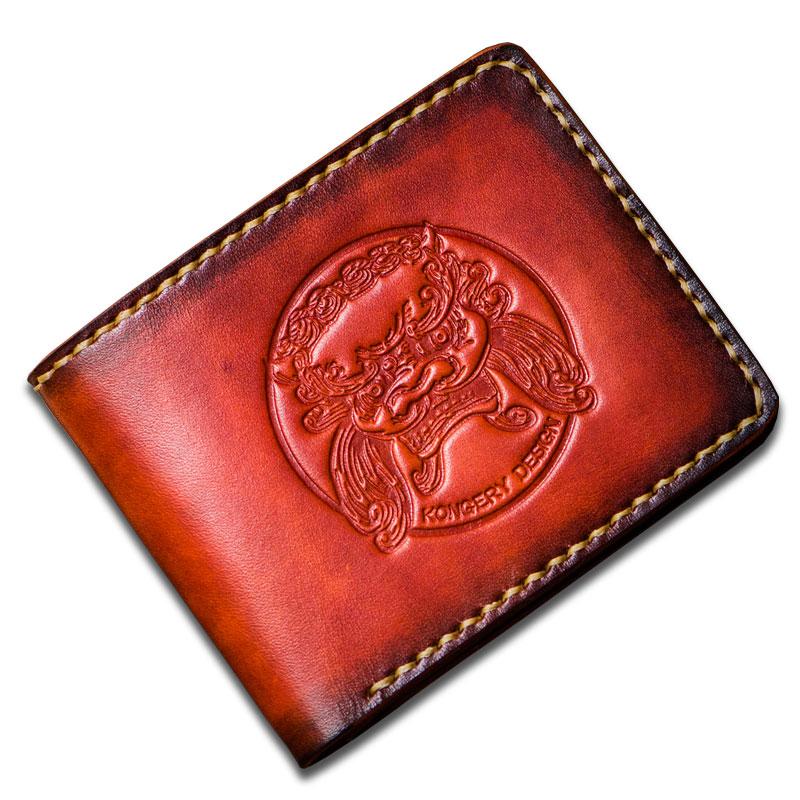 Design: Handmade Leather Chinese Lion Tooled Mens billfold Wallet Cool Leather Wallet Slim Wallet for Men