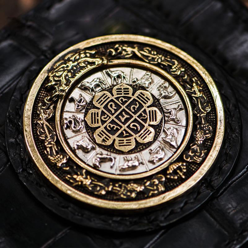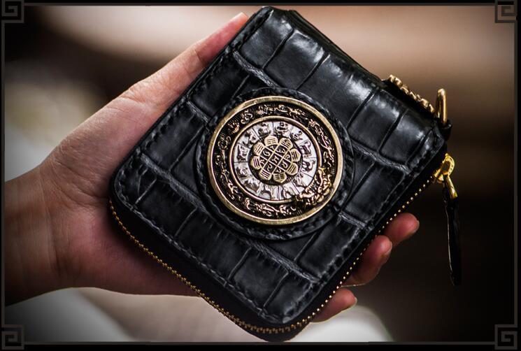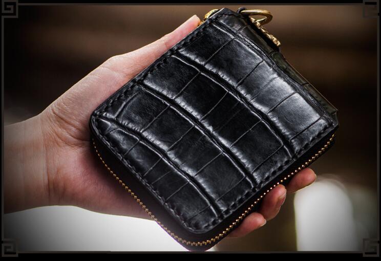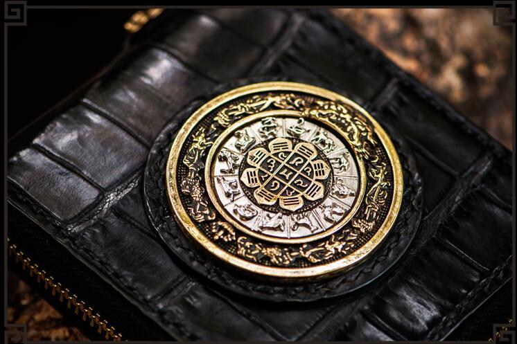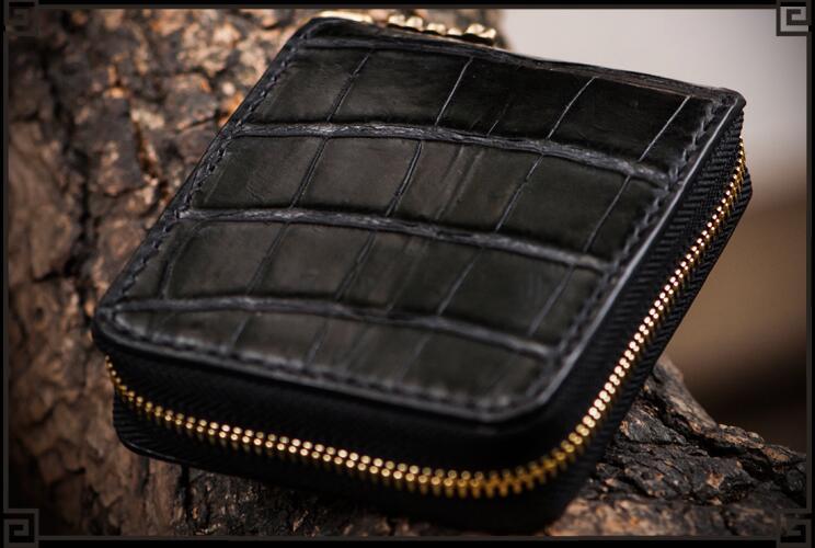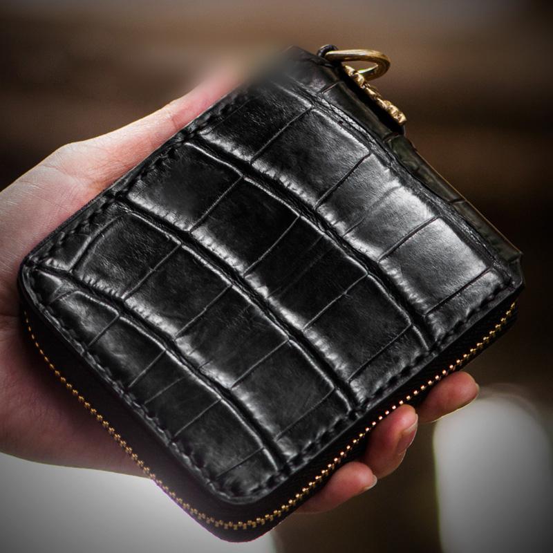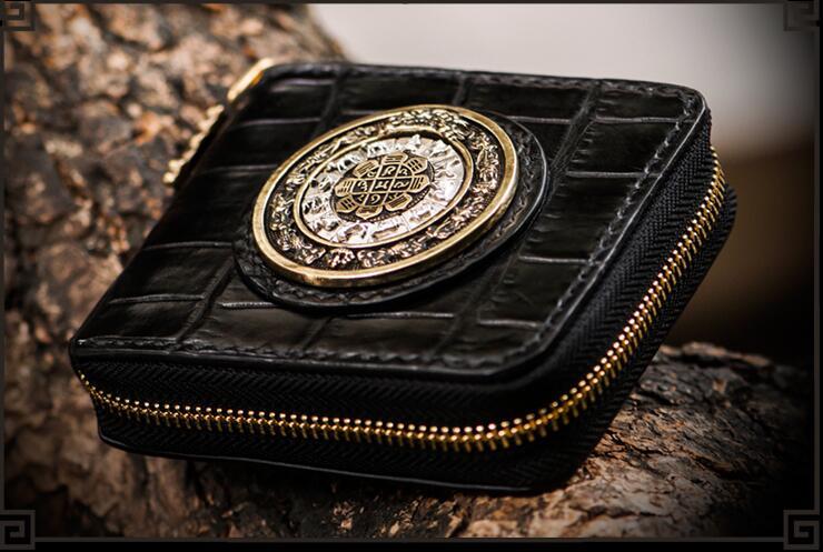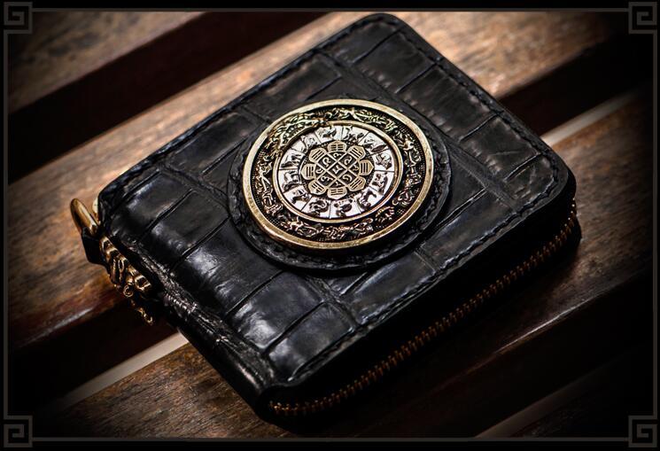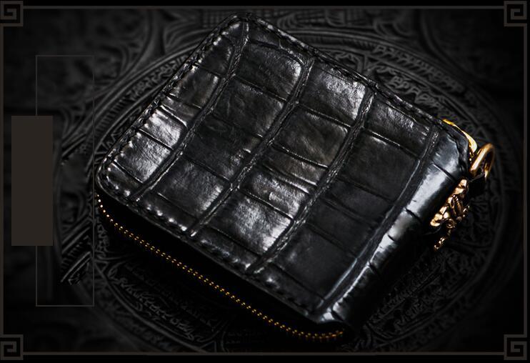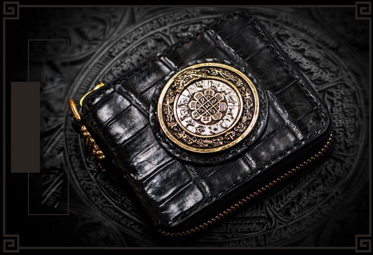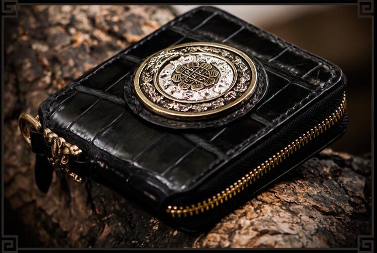Design: Handmade Leather Crocodile Skin Tooled Mens billfold Wallet Cool Chain Wallet Biker Wallet for Men