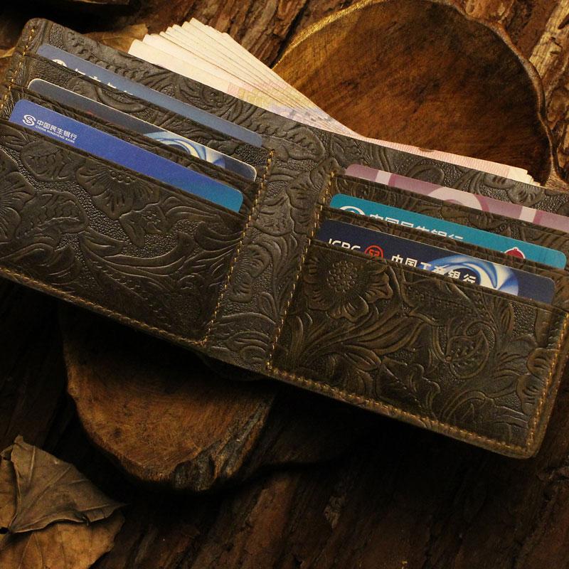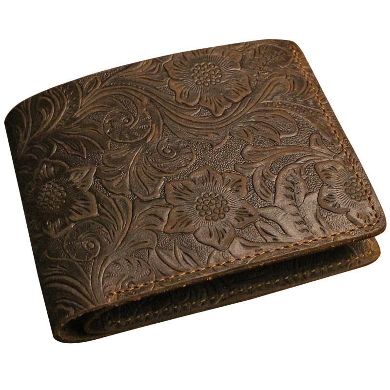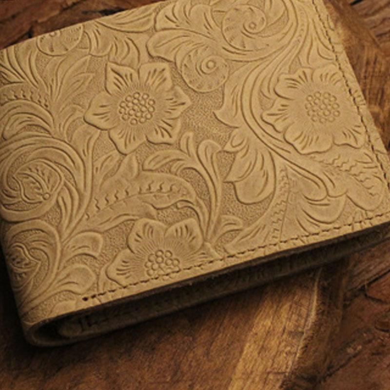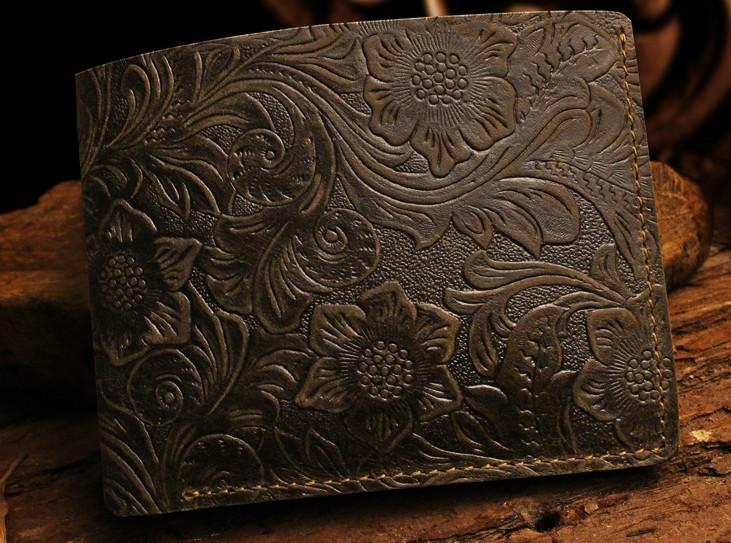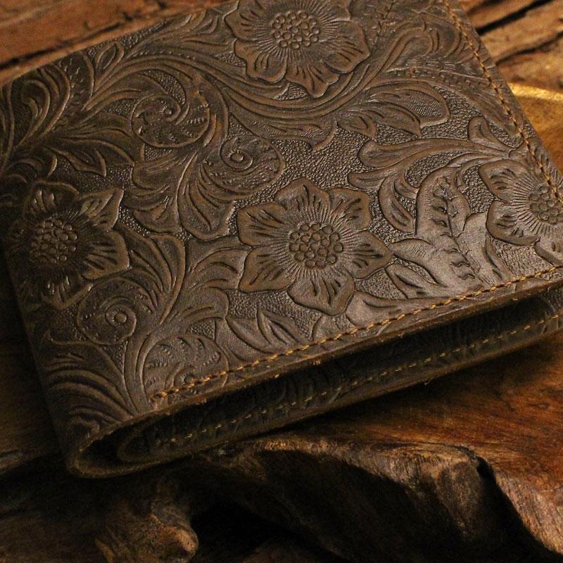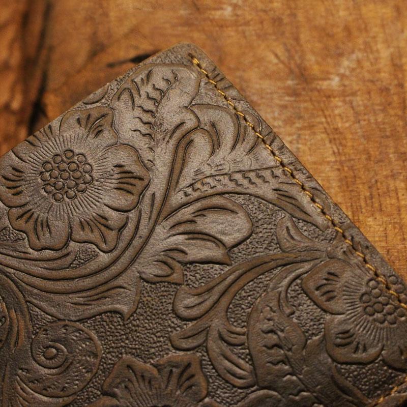 Design: Handmade Leather Floral Mens Cool Slim Leather Wallet Men billfold Wallets Bifold for Men