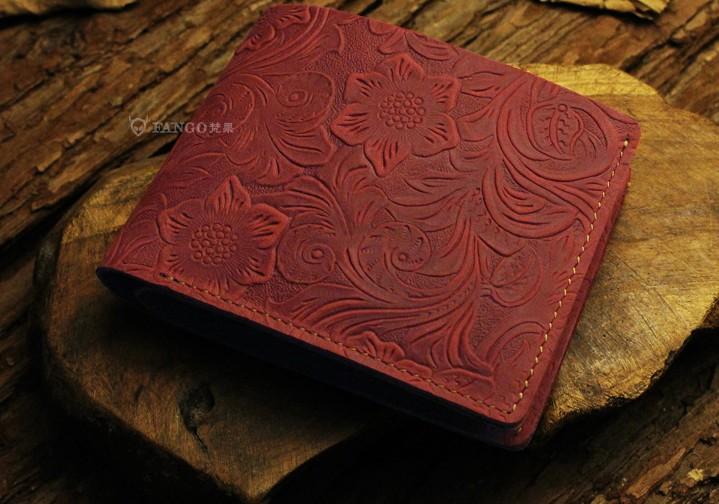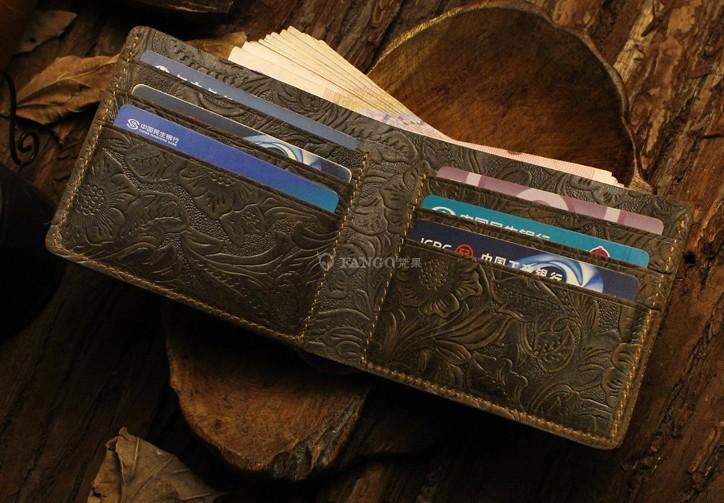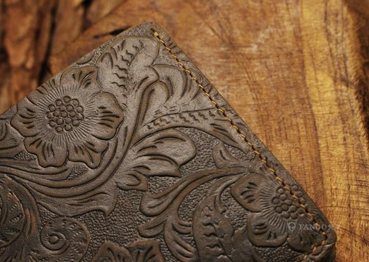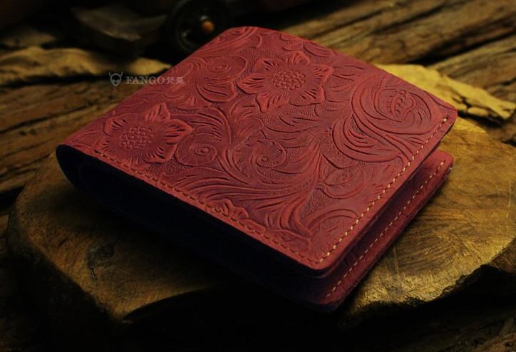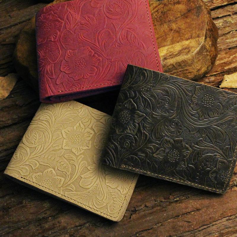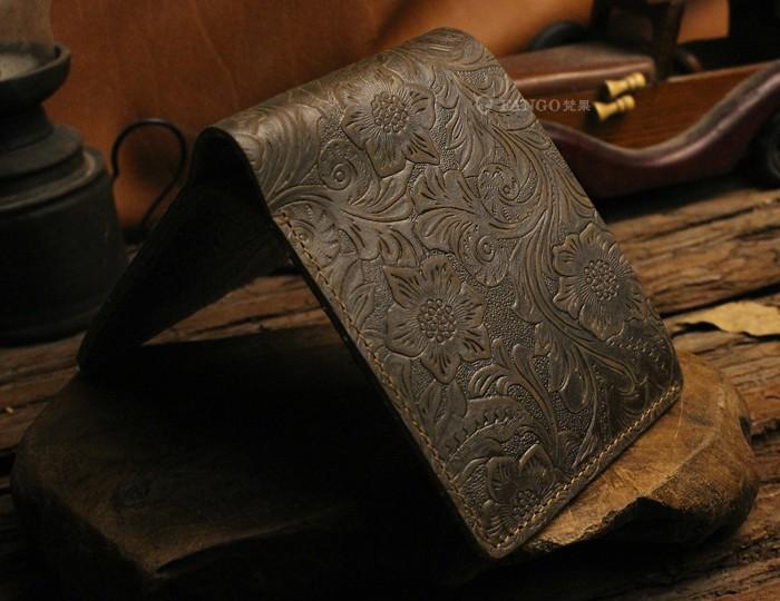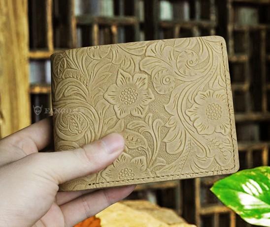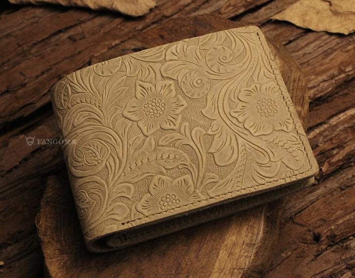 Design: Handmade Leather Floral Mens Cool Slim Leather Wallet Men billfold Wallets Bifold for Men