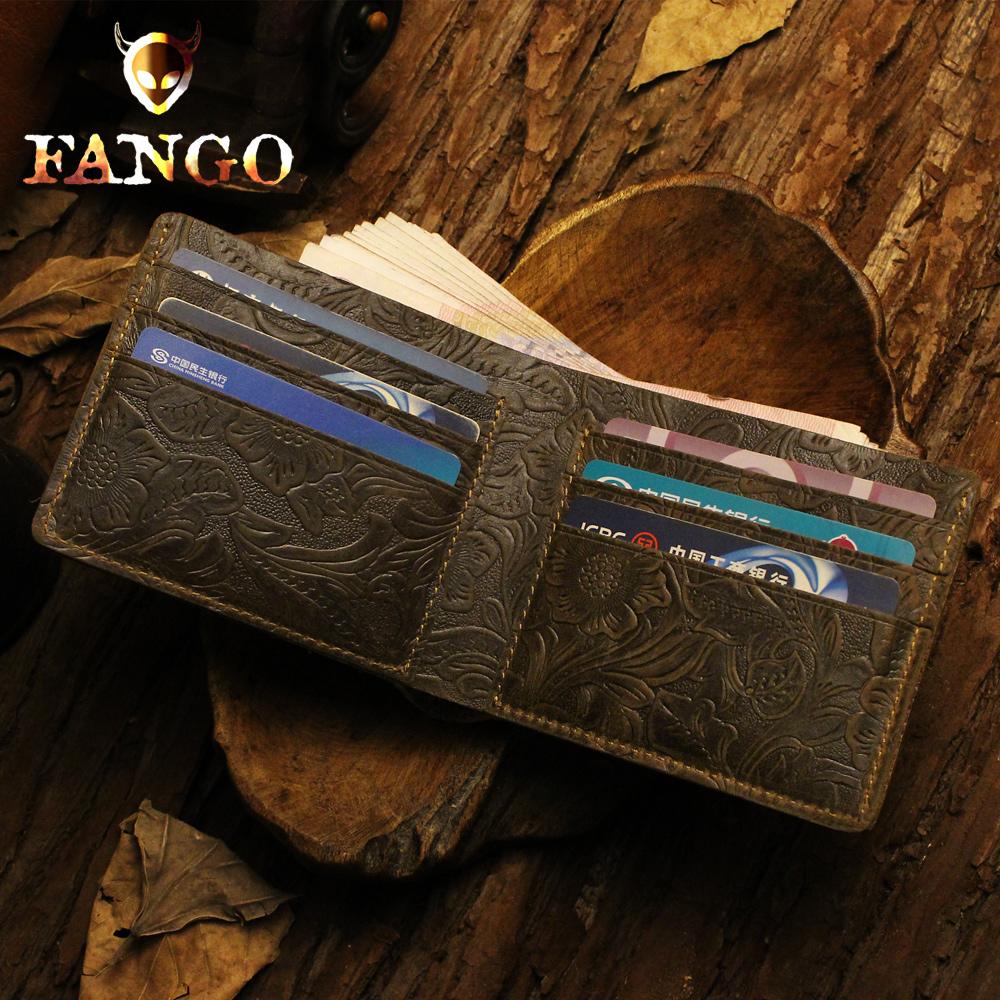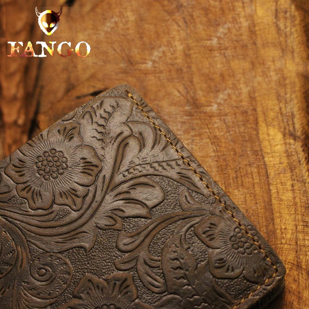 Handmade Leather Floral Mens Cool Slim Leather Wallet Men billfold Wallets Bifold for Men