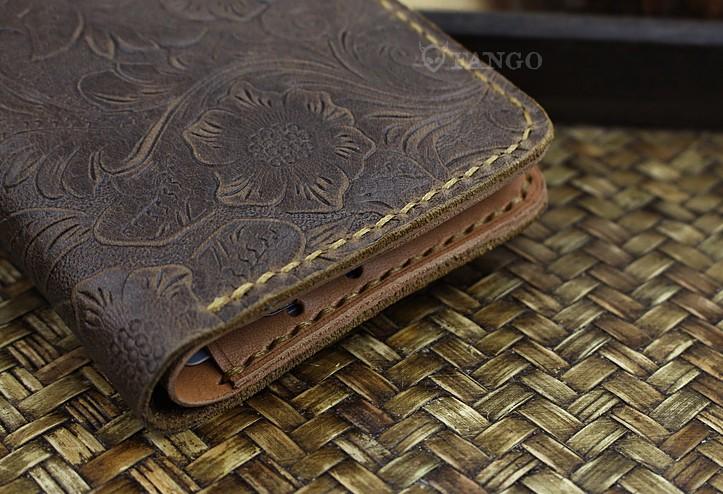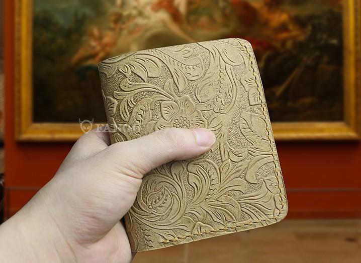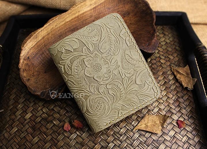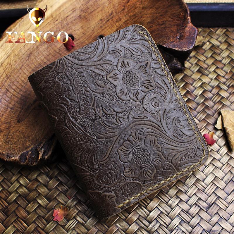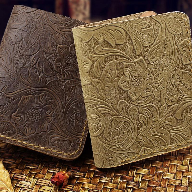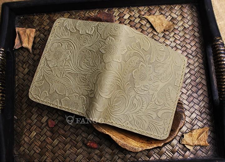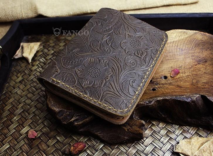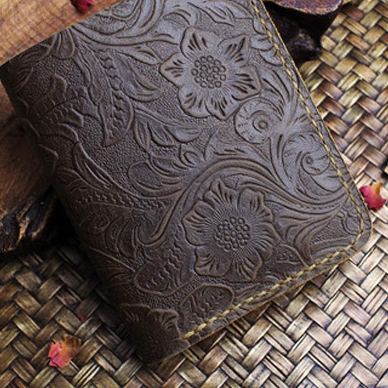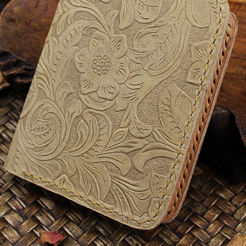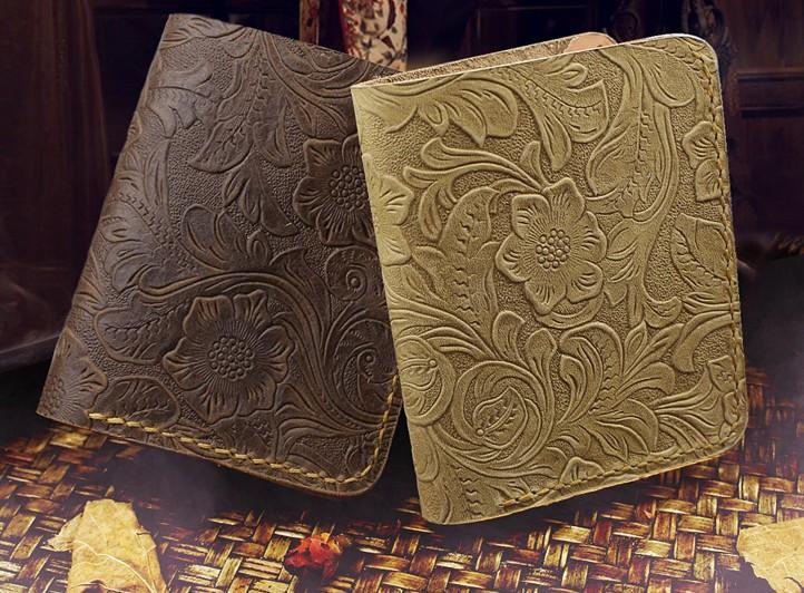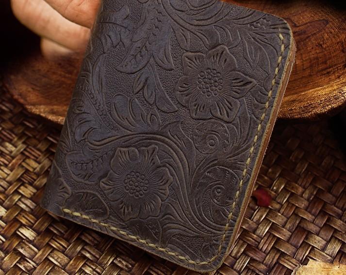 Design: Handmade Leather Floral Mens Cool Slim Leather Wallet Men billfold Wallets Bifold for Men
