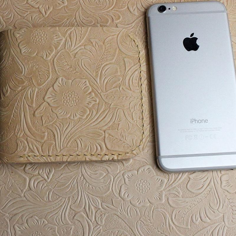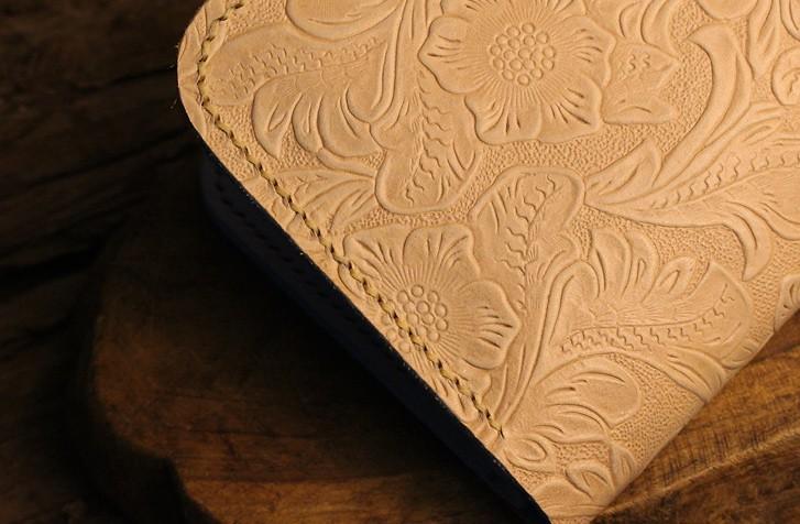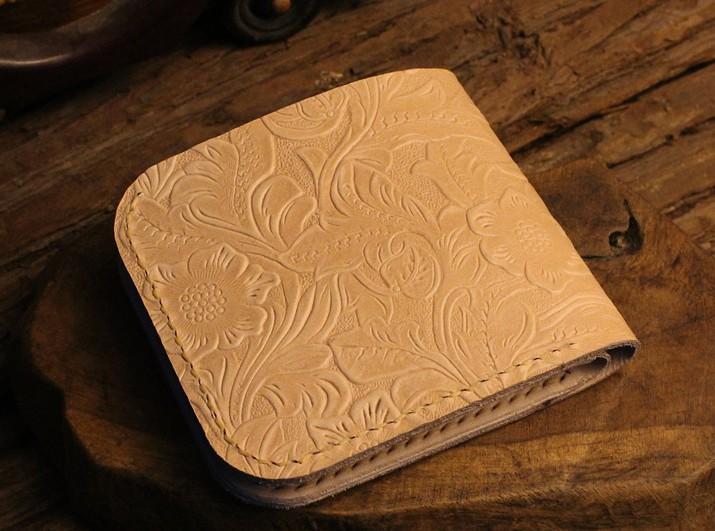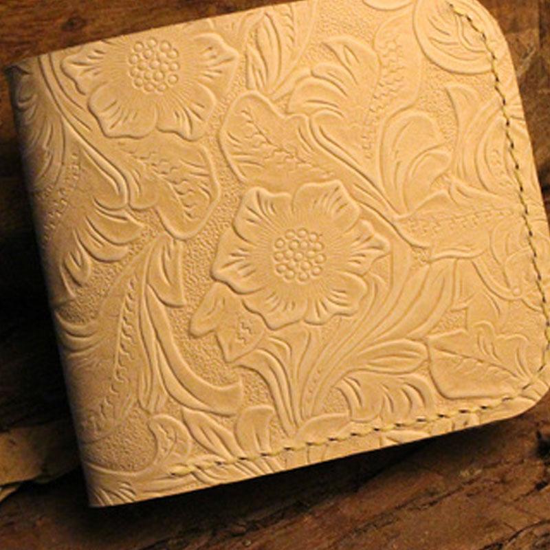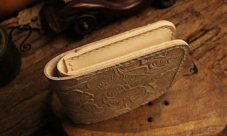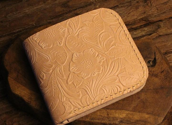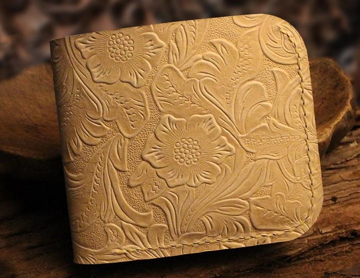 Design: Handmade Leather Floral Mens Cool Slim Leather Wallet Men billfold Wallets Bifold for Men
