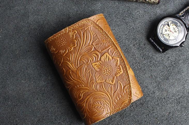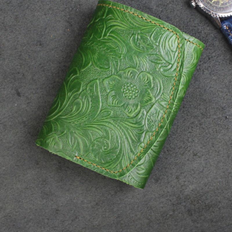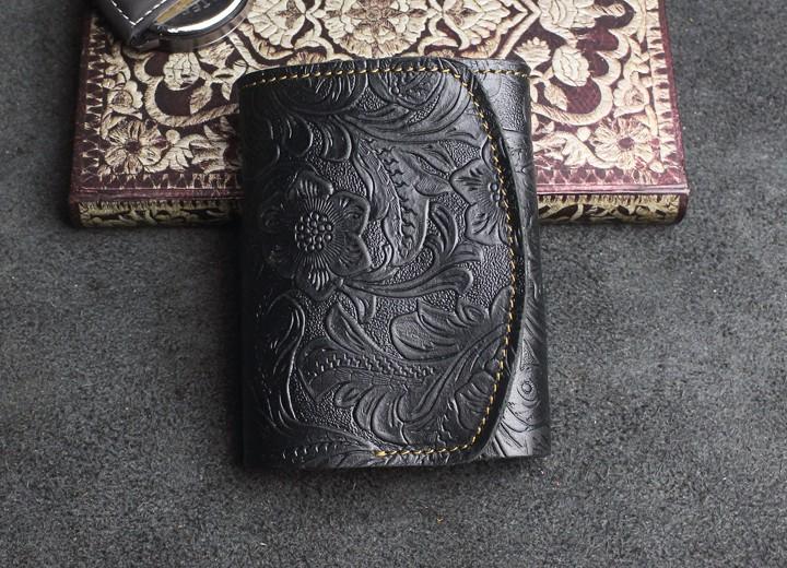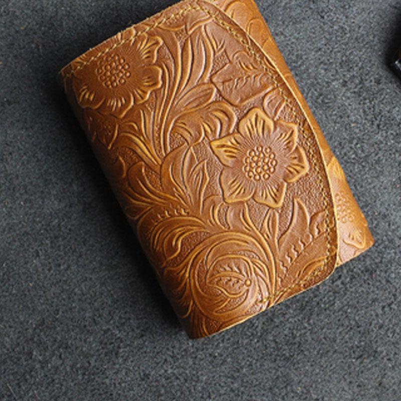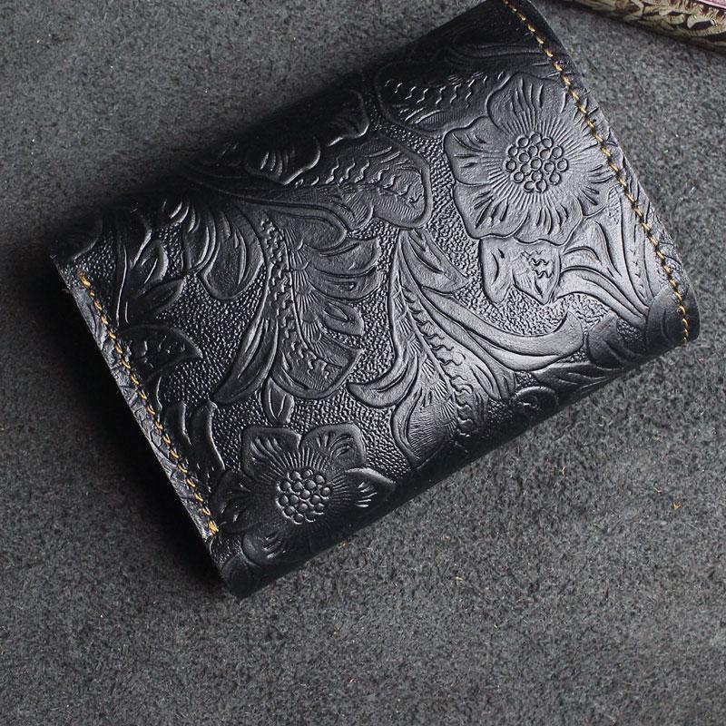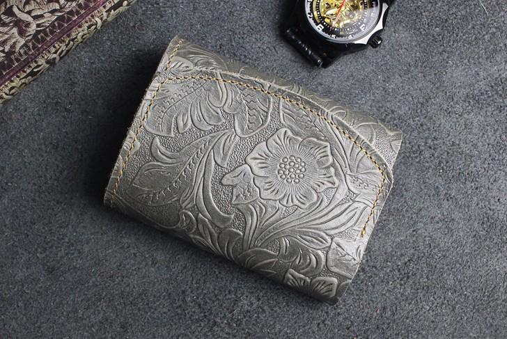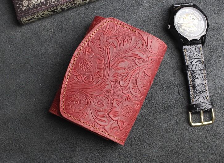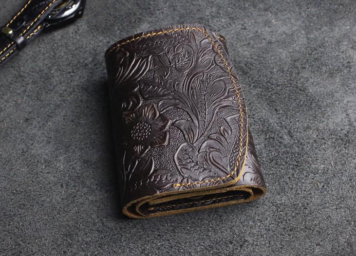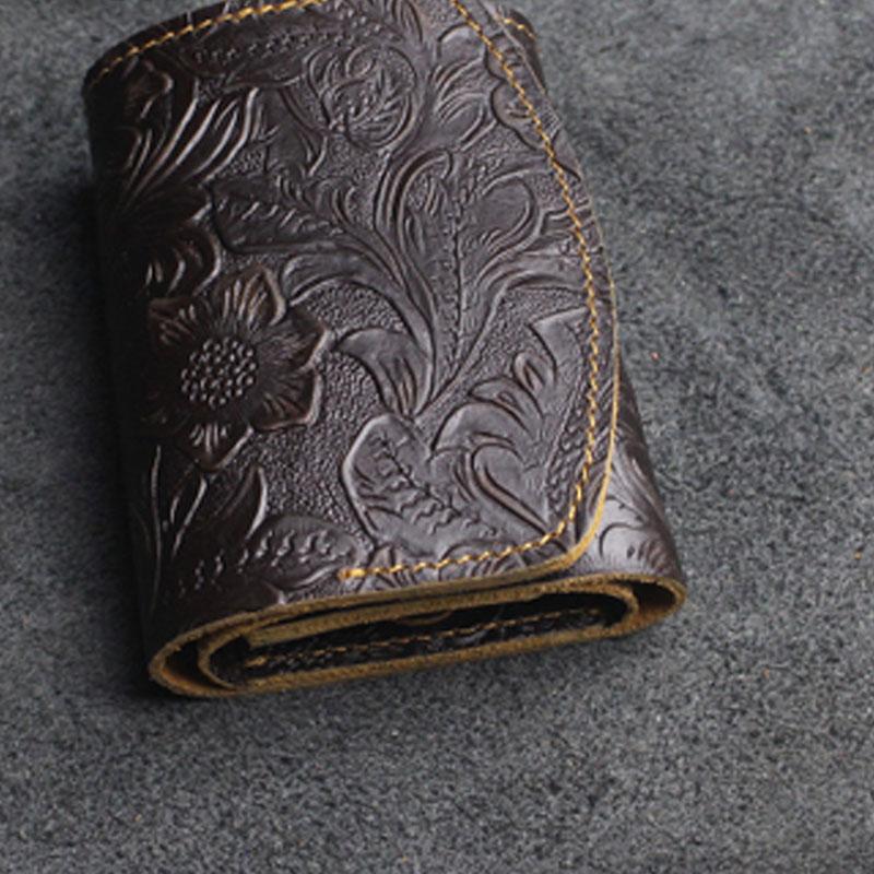 Design: Handmade Leather Floral Mens Trifold Cool billfold Wallet Card Holder Small Card Slim Wallets for Men
